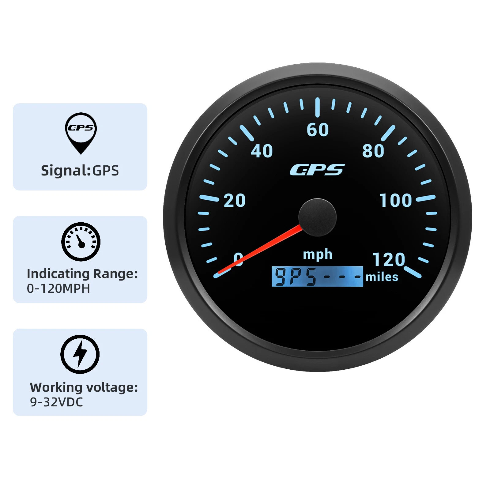 item  | 110MM Black GPS Speedometer 0-120MPH Gauge Waterproof for Motorcycles Boat  |