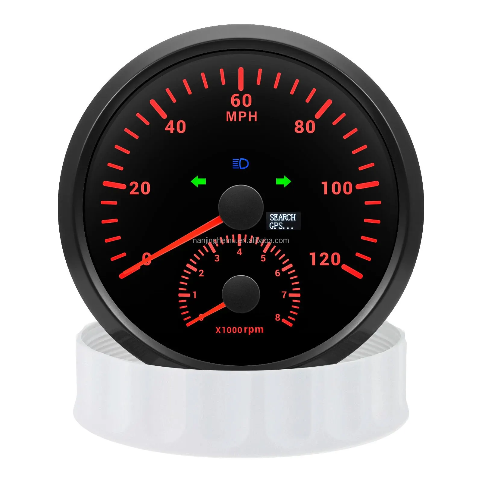 110mm Black GPS Speedometer 120MPH With Tachometer With Turn Signal High Beam