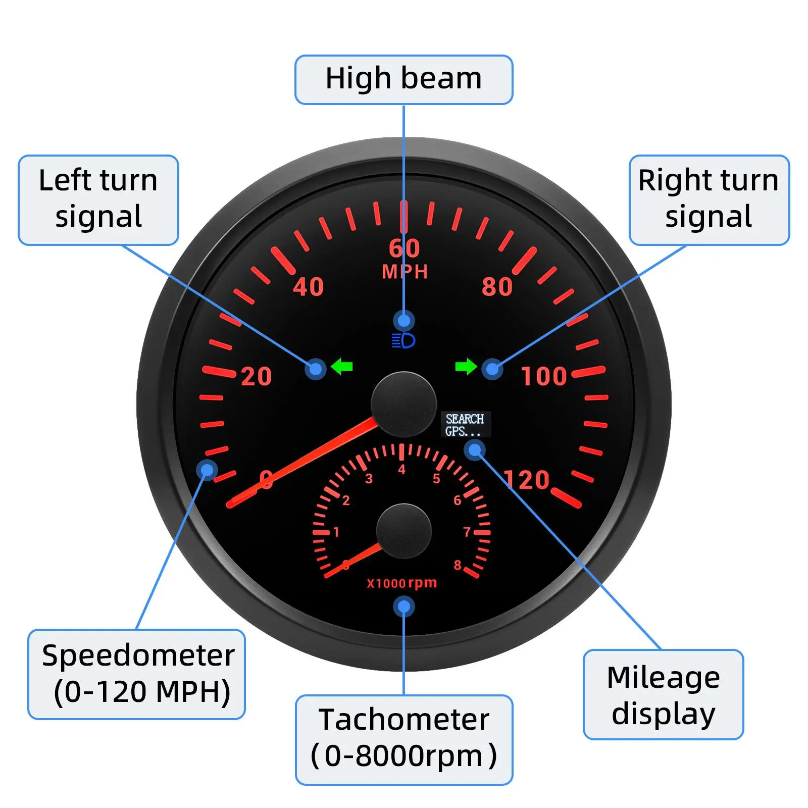FeaturesSuitable for all vehicles and off-road vehiclesThe signal comes directly from the satellite signal receiver(GPS Antenna). don't need other speed sensor.The gauge has the advantages of high precision. quick location confirmation and short start up time.IP67 waterproof and dustproof gradeReverse polarity protection and anti-fogging performanceStepper motors used for full range of stepping gauges. great feature with its less power consumption. longer life. higher precision. etc.