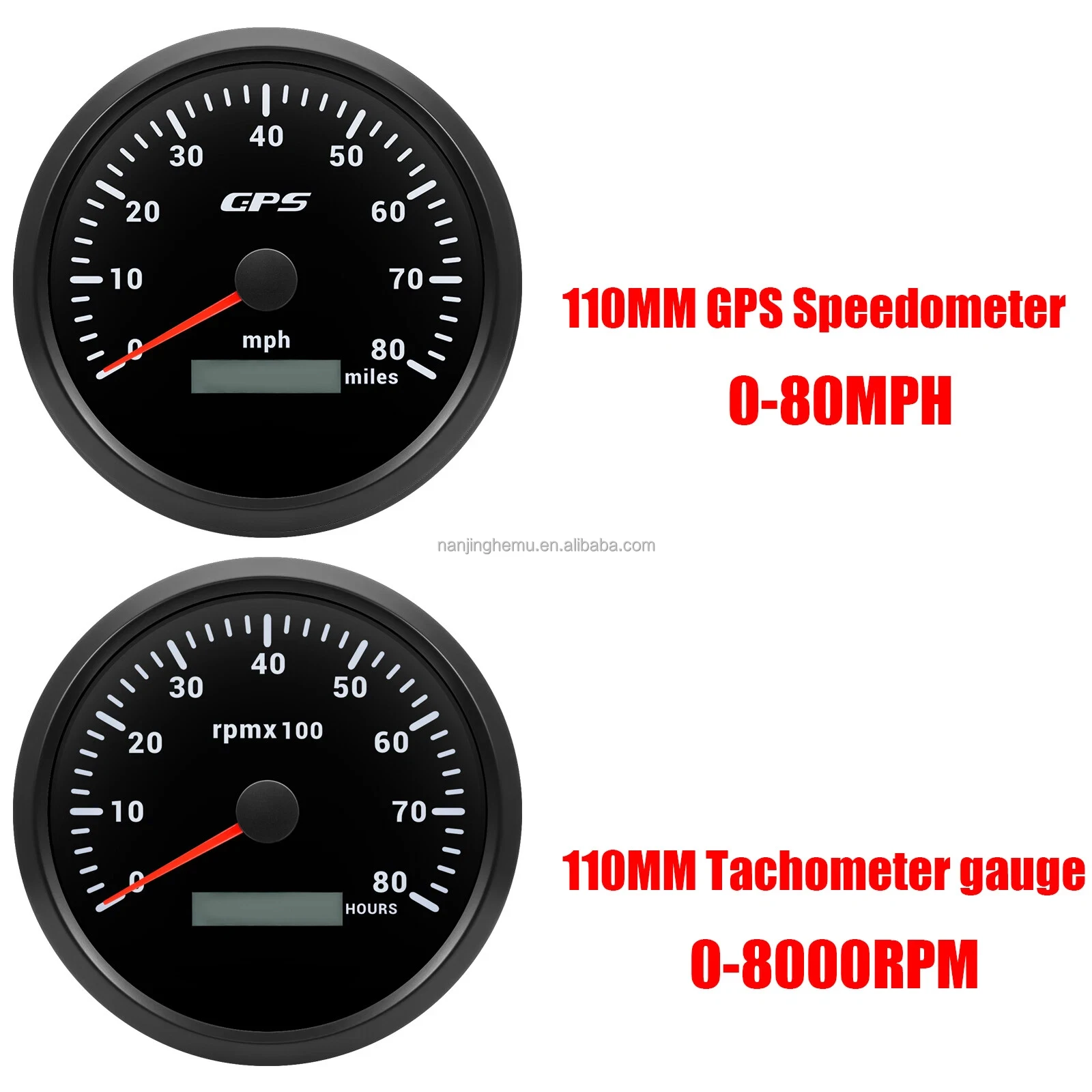 110mm Waterproof GPS Speedometer 0-80MPH 110mm Tachometer 8000RPM Gauge for Boat