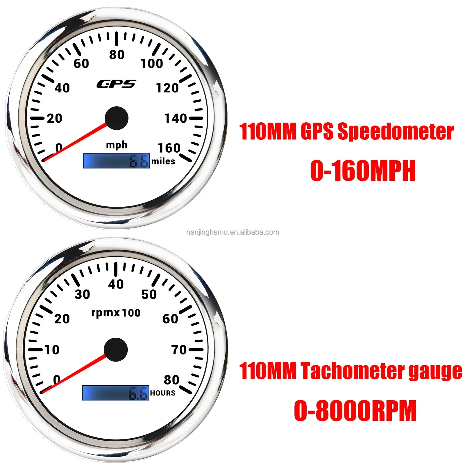 110mm Waterproof GPS Speedometer 160MPH Tachometer 8000RPM 2 Gauge SET for Boat