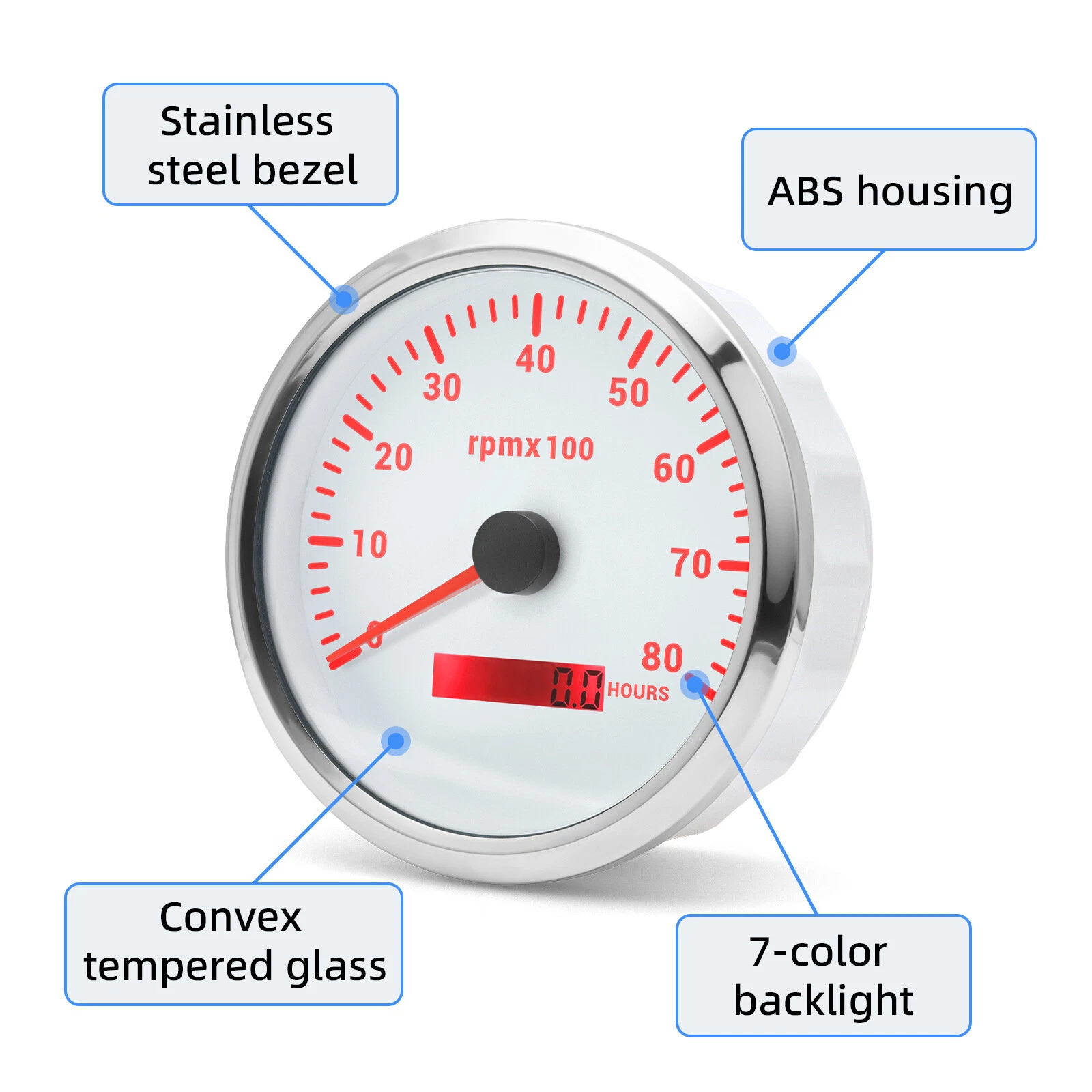 Feature:High-brightness LED backlight.316 stainless steel for long-term use even in acid-base.humid environment.IP67 waterproof and dust-proof grade.With curved glass( with anti-fog function).Suitable for all kinds of vehicle modification.Using stepper motor drive pointer. accurate display of the engine speed. and with the LCD display clear display mileage.Gauges have many kinds backlight color (red.yellow.orange.green.blue.purple.white).customers can adjust any color that you like.GPS Speedometer GaugeInstall Diameter: 110mm (4-3/8")Signal:GPSWorking Voltage: 9~32V DCIndication Range: 0-160MPHBacklight:7 Colors BacklightConnection:Black: Ground(-)Red: 9-32VDC(+)Yellow: Backlight(+)Tachometer Install Diameter:110mm (4-3/8")Engine hours: 0.0-99999.9HBacklight :7 Color backlightIndicating Range:0~8000 RPMSignal: PulseConnection:Black: Ground(-)Red: 9-30VDCBlue: RPM SignalYellow: BacklightPackage Includes:1X 110MM Digital GPS Speedometer Gauge1X GPS Antenna1X 110MM Tachometer2X Installation Instruction