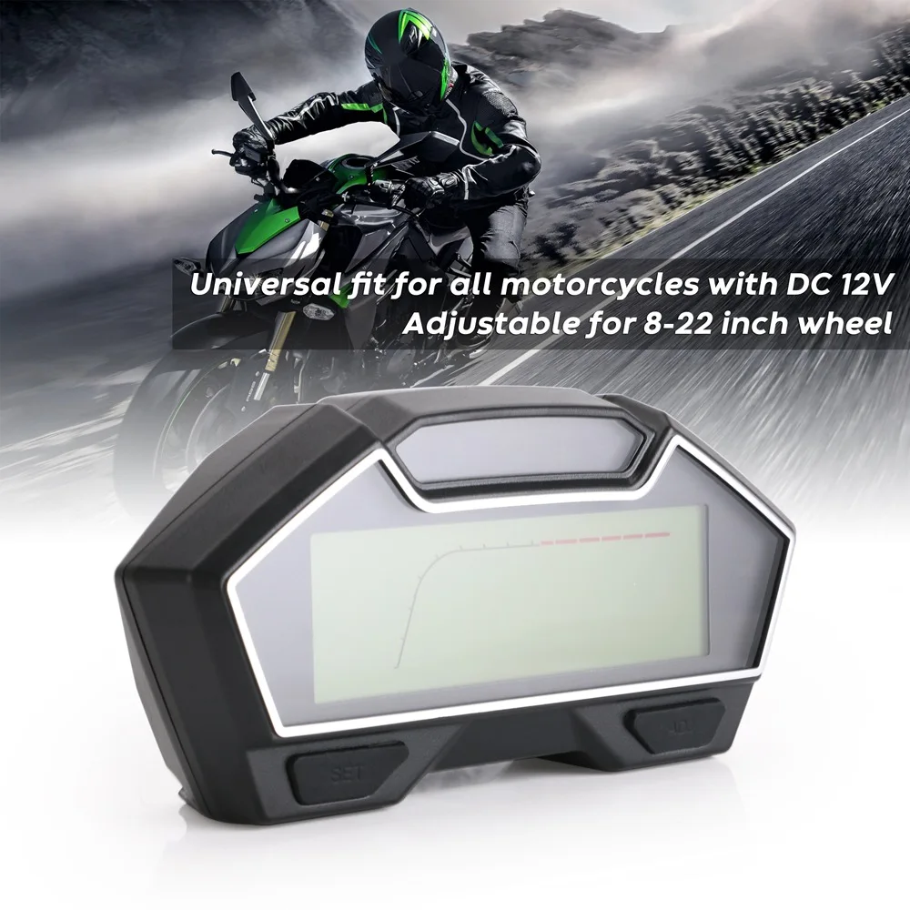 12V Moto Speedometer Replacement Lcd Digital Tachometer Odometer Water Temperature Fuel Gauge Motorcycle Fuel Meter