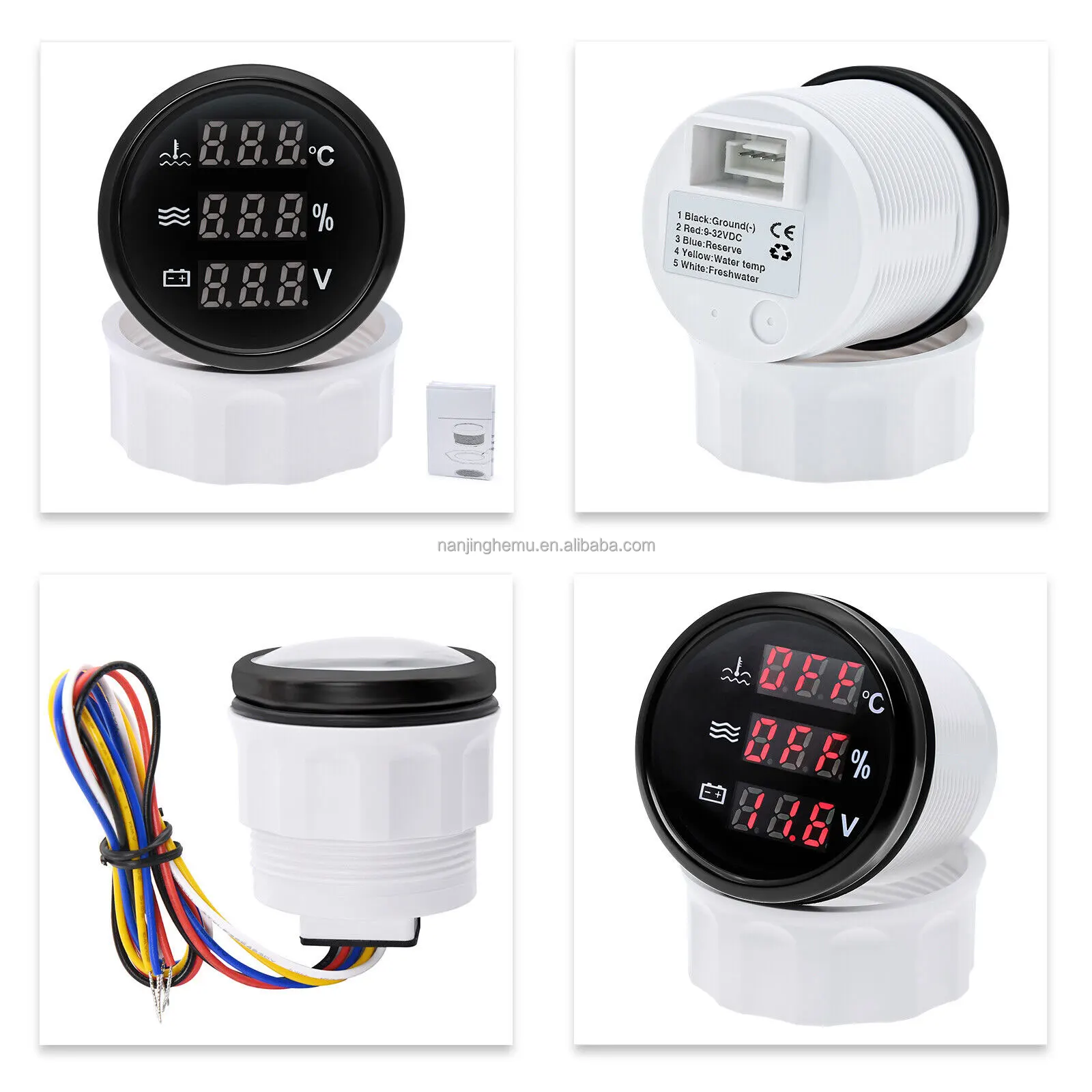 2" 52mm 3 in 1 Digital Gauge Water Temp Water Level Voltmeter For Boat Car Truck