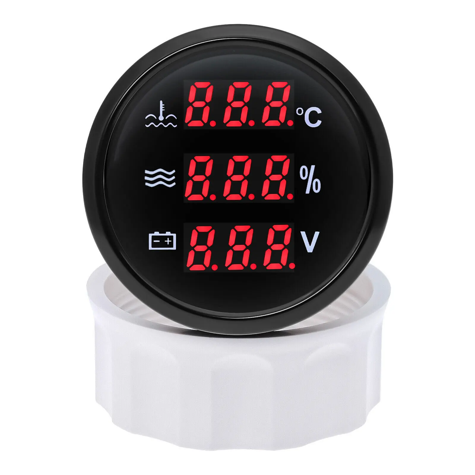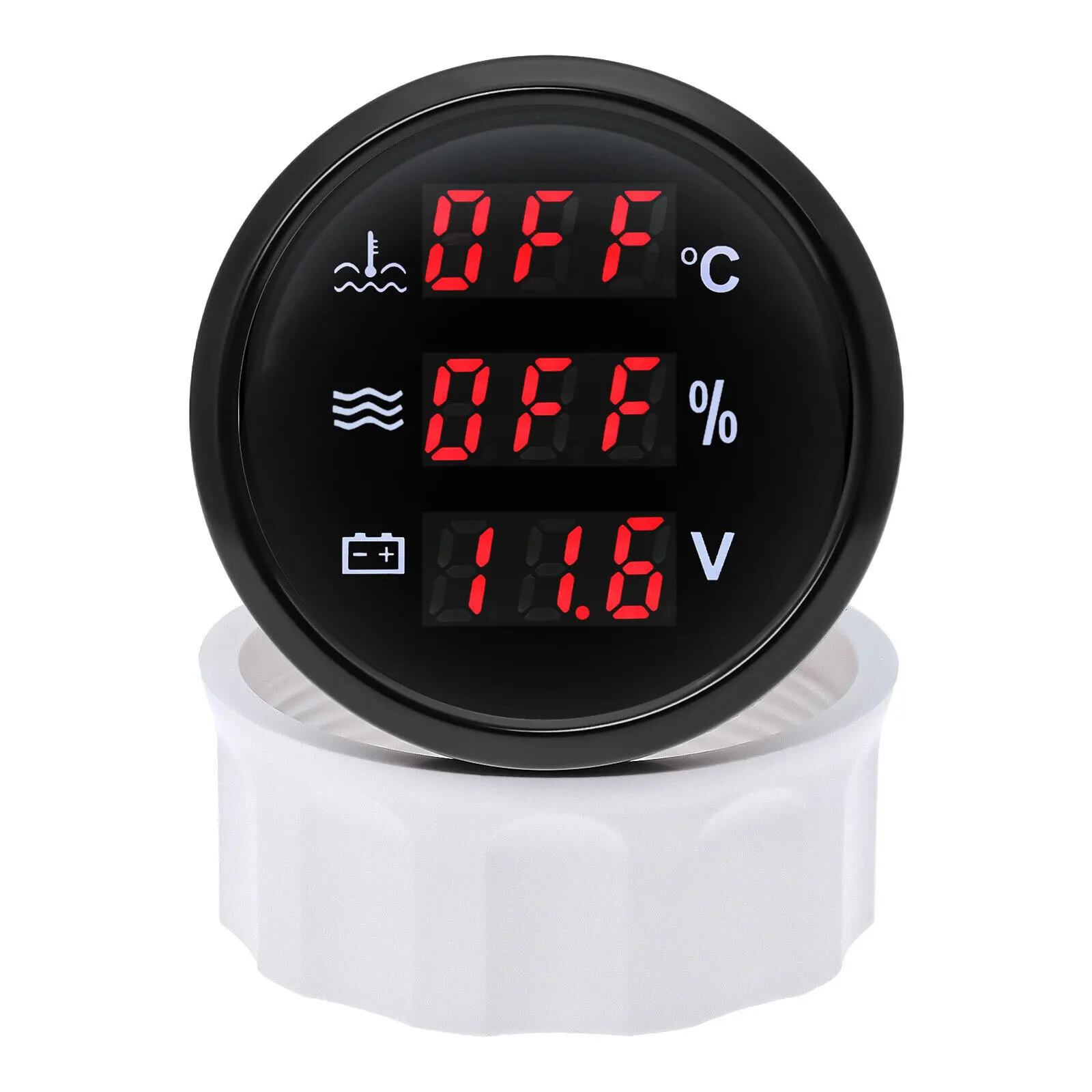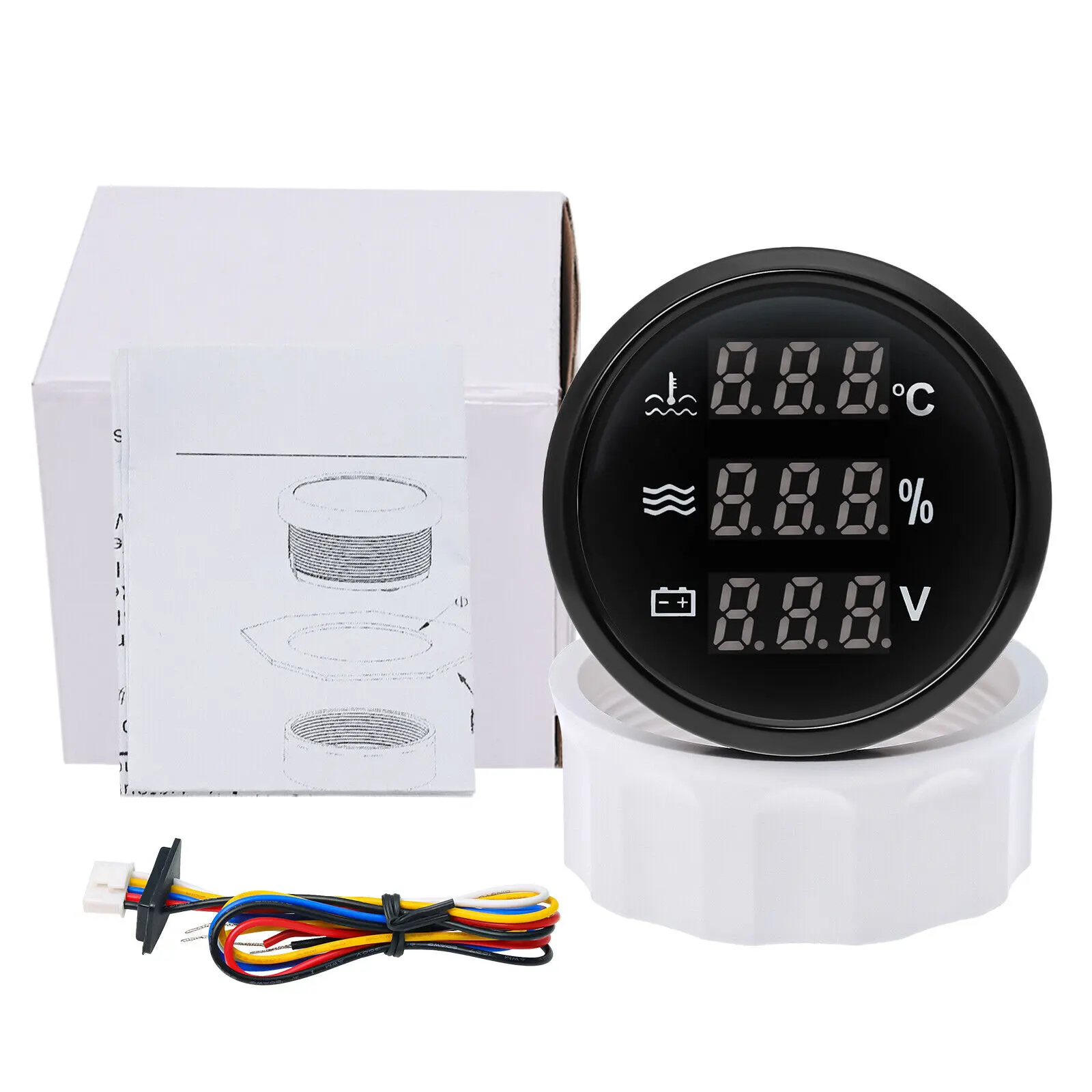 2" 52mm 3 in 1 Digital Gauge Water Temp Water Level Voltmeter For Boat Car Truck
