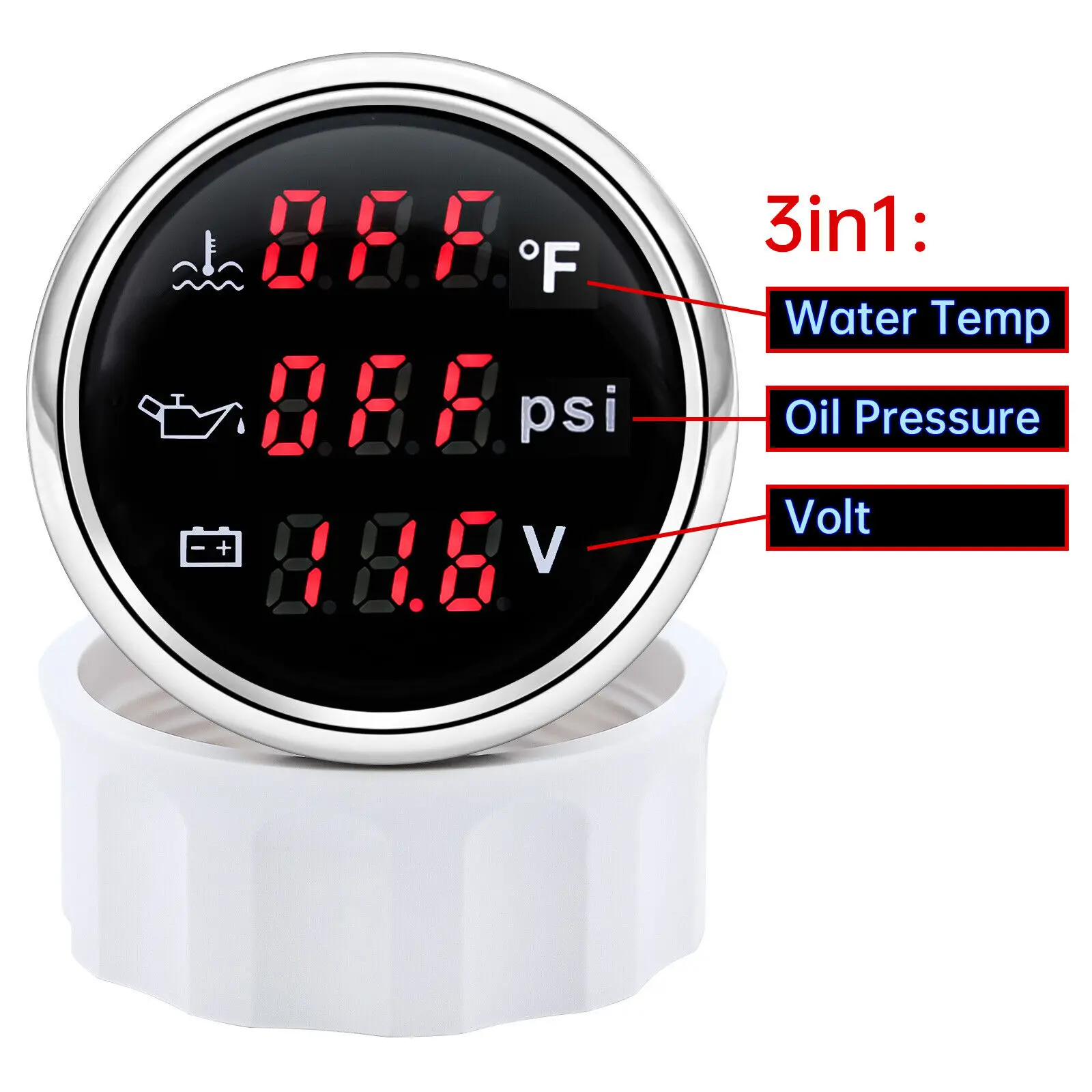 2” 52MM 3 in 1 Gauge Boat Car Water Temp Oil Pressure PSI Voltage With Sender