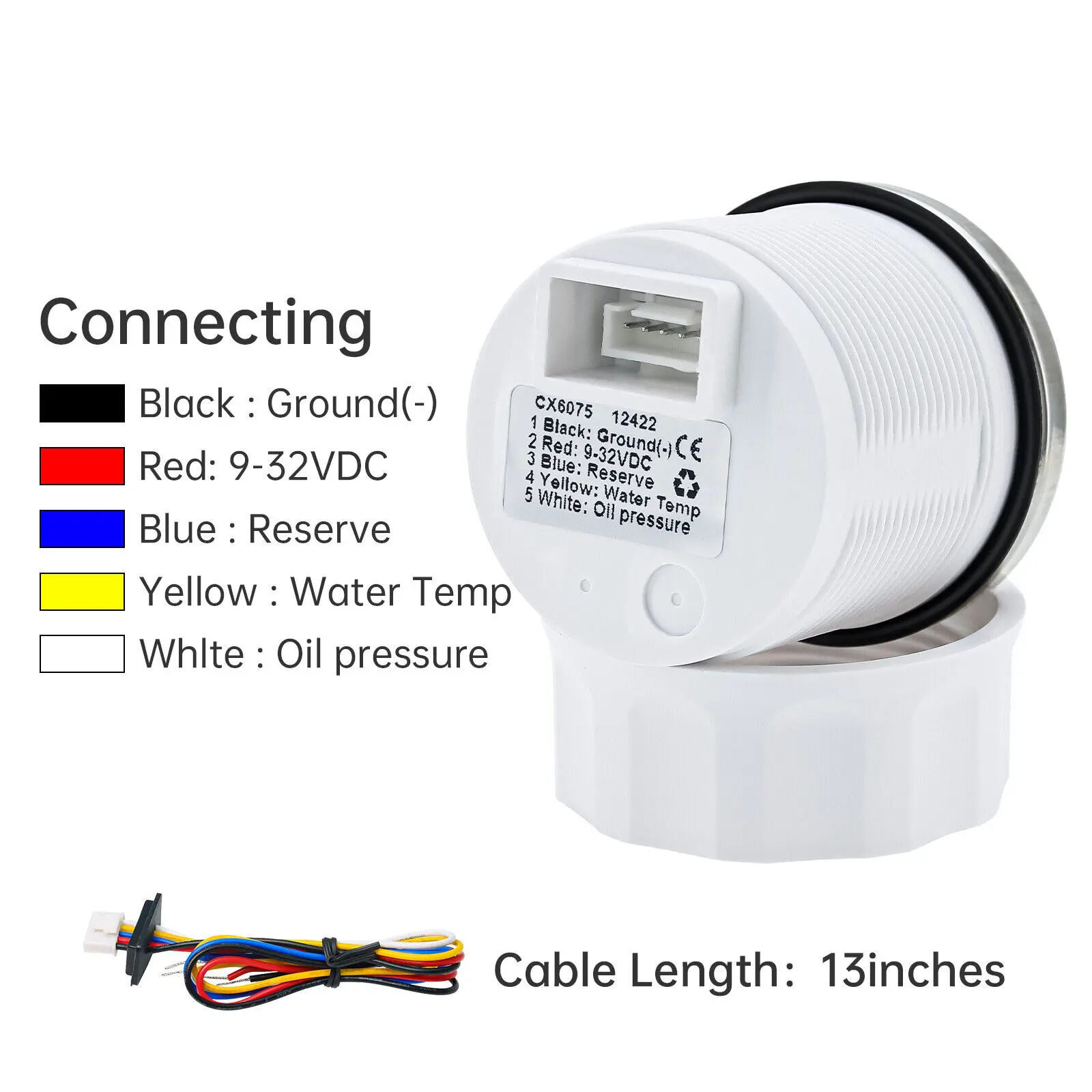Features:Water Temperature: 100-250?H (Temperature sensor: 301-22ohm)Oil Pressure: 0-145 PSI (Pressure sensor: 10-184ohm)Sensor are not provided with this gauge.Plz. order the sensor separately if you need it.Voltmeter: 9-32VAlarm: Symbal flashing(When 2 or more faults occur. an item is reported every 3s.)Degree of Protection: IP67Backlight: TFT Screen Dimensions:52mm diameter (2")55mm Depth (2-3/4") Package Included:1x 3 in 1 Multi-function Gauge1x 1/8NPT Temp Sensor1x 1/8NPT Oil pressure1x Multi-plug socket1x Instruction