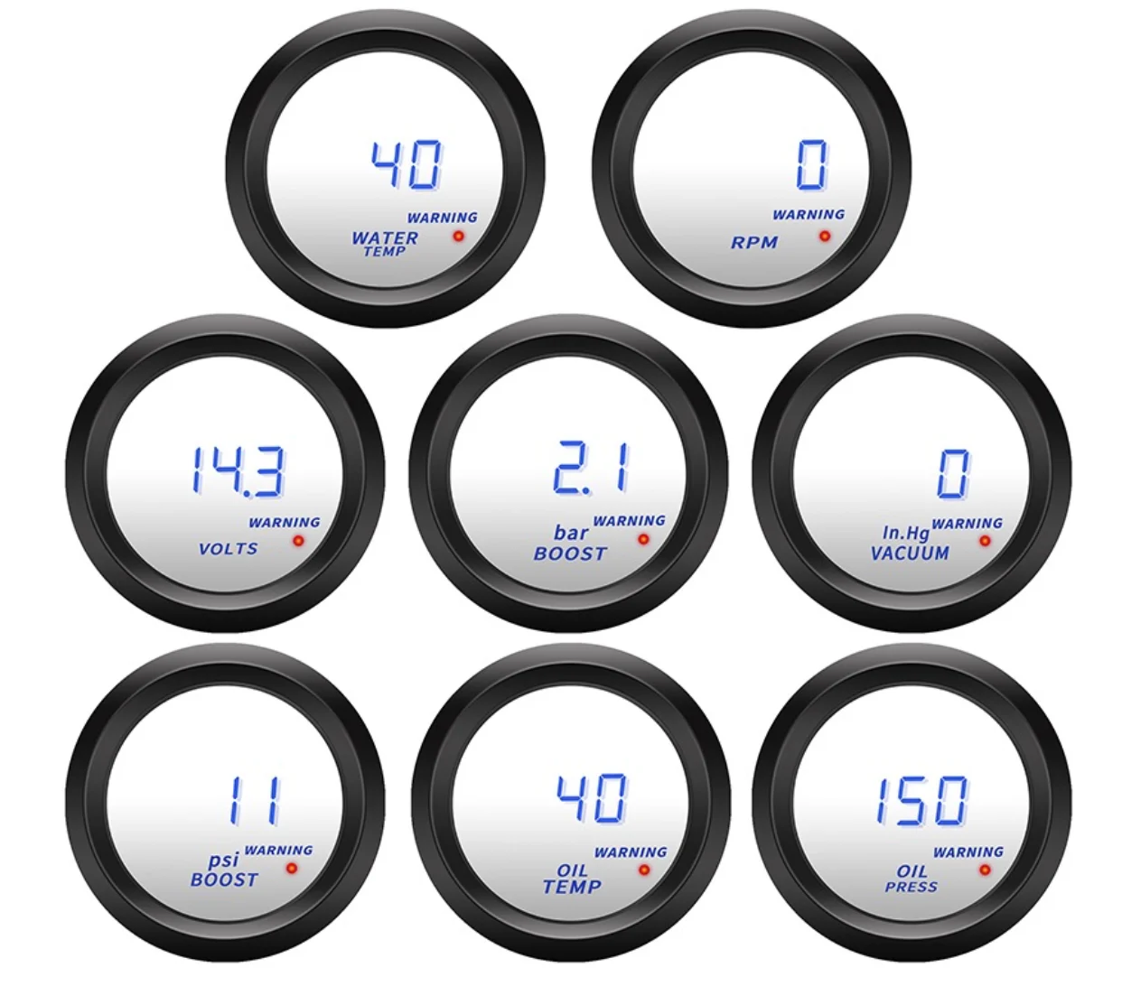 Be the first to review “2 52MM LED Auto Digital Gauge Racing Car Tachometer RPM Boost Vacuum Oil Press Water Temp Oil Temp Gauge Full Set” Cancel reply