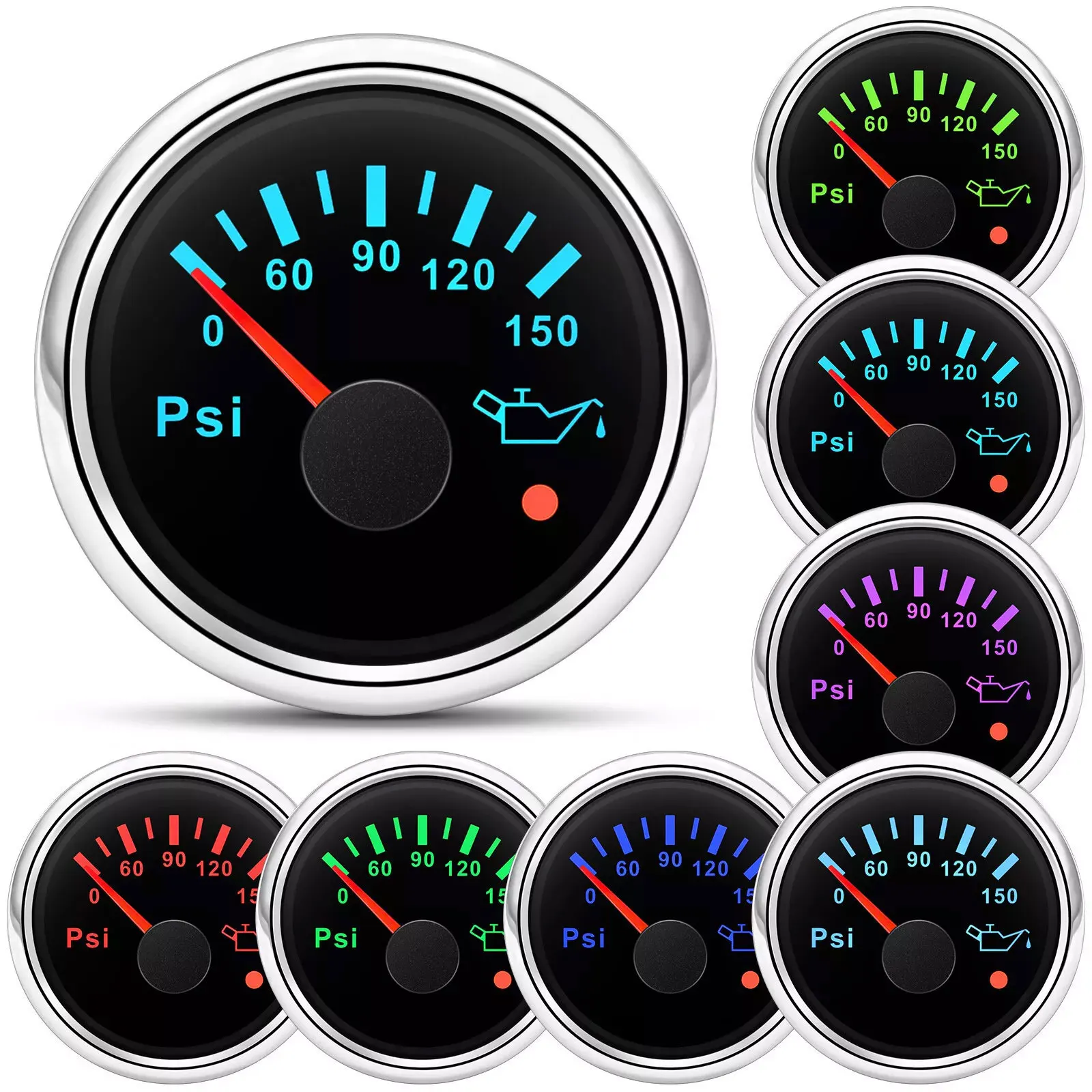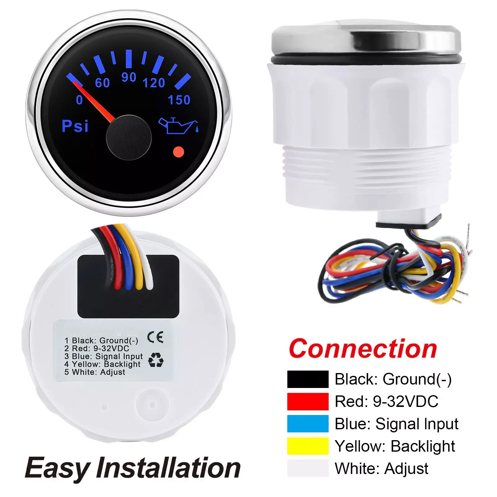 Product Name | 2'' 52MM Oil Pressure Gauge 0-150PSI 10-184ohms with Sensor for Car Marine Truck |