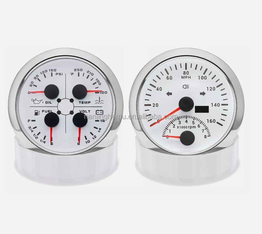 Features:Suitable for all vehicles and off-road vehiclesThe signal comes directly from the satellite signal receiver(GPS Antenna). don't need other speed sensor.The gauge has the advantages of high precision. quick location confirmation and short start up time.IP67 waterproof and dustproof gradeReverse polarity protection and anti-fogging performanceStepper motors used for full range of stepping gauges. great feature with its less power consumption. longer life. higher precision. etc.Most importantly. the gauge is easy to setup. and can be used in all vehicles. boats and off-road vehicles.Speedometer Specifications:Application: Universal fit for Motorcycle/ Boat/Truck/Bus/CarElectronic Speedometer (stepper motor)No Mechanic Sensor. get speed signal from GPSSpeed ≠0 and show accurate speed in tunnel with the help of accelerometerTotal Mileage AdjustableGPS Blind Area Odometer CompensationOverSpeed Buzzer Alarm (Value Adjustable)Indication Light (Left. Right and High BeamInstallation Diameter: 85mm (3 3/8")Speed Range: 0~160MPHRPM Range : 0~8000RPMMileage Range: 0-99999.9milesWorking Voltage: 12V/24VWorking temperatures: – 40 to 85°CProtection rank: IP67 WaterproofReverse polarity protection and anti-fogging performance4 IN 1 Gauge Technical Data:Fixing dimension: 85mmIndicating Range: Oil press. meter: 0-150PSI;Water temp. meter: 100-250?HFuel level meter: 0-190ohms/240-33ohms. empty-full; The signal can be adjustedVoltmeter: 8-16VWorking Voltage: 12VInput Signal:10-184ohms for 0-10Bar oil pressure meter;0-190ohms for fuel level meter;(Default 0-190ohms. can adjust to 240-33ohms)8-16V voltage meter;Input Signal 320-22ohms for water temperature meterRed backlightProtection grade is IP67. the whole body is completely waterproof;Excellent antifogging function;316 Stainless steel bezel with curved glass;Convenient Installation by multi-plug socket connecting way;Accessories: matched with connectors. Installation InstructionPackage Included:1 x 85mm 4 in 1 Multifunctional Gauge1 x 85mm GPS Speedometer Gauge1 x GPS Antenna2 x Cable2 x Installation Instruction