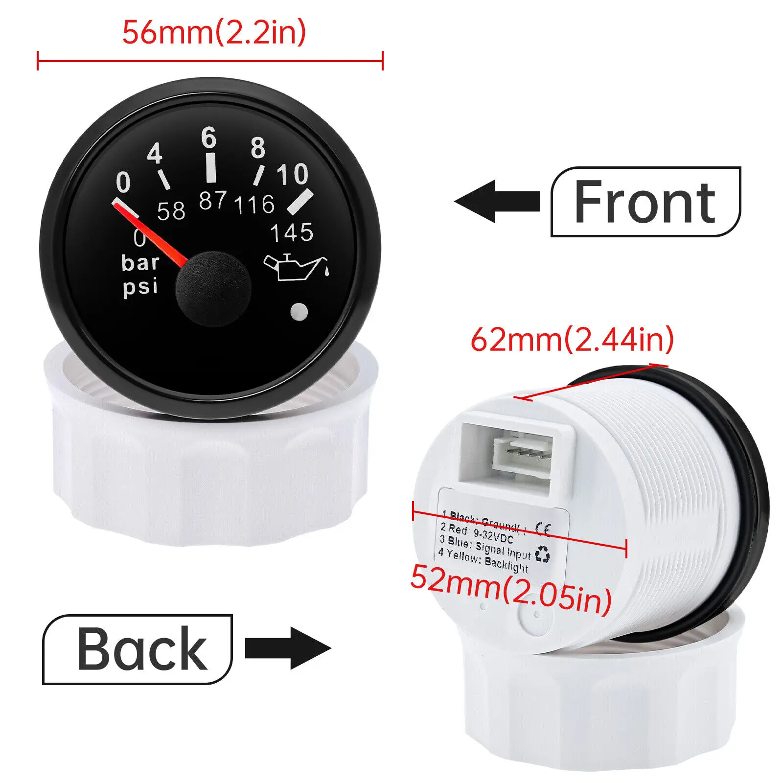 Product Name | 2''52mm Oil Pressure Gauge 0-145psi 0-10Bar Press Meter for Car Boat Waterproof |