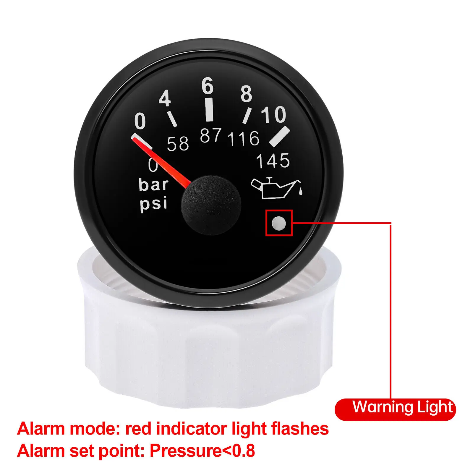 2”52mm Oil Pressure Gauge 0-145psi 0-10Bar Press Meter for Car Boat Waterproof