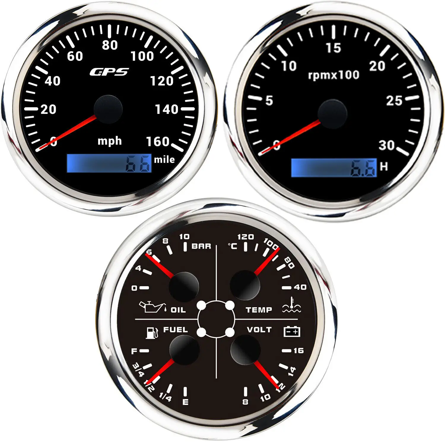 3 Gauge Set 85mm GPS Speedometer 0-160MPH Waterproof for Marine Boat Car Truck