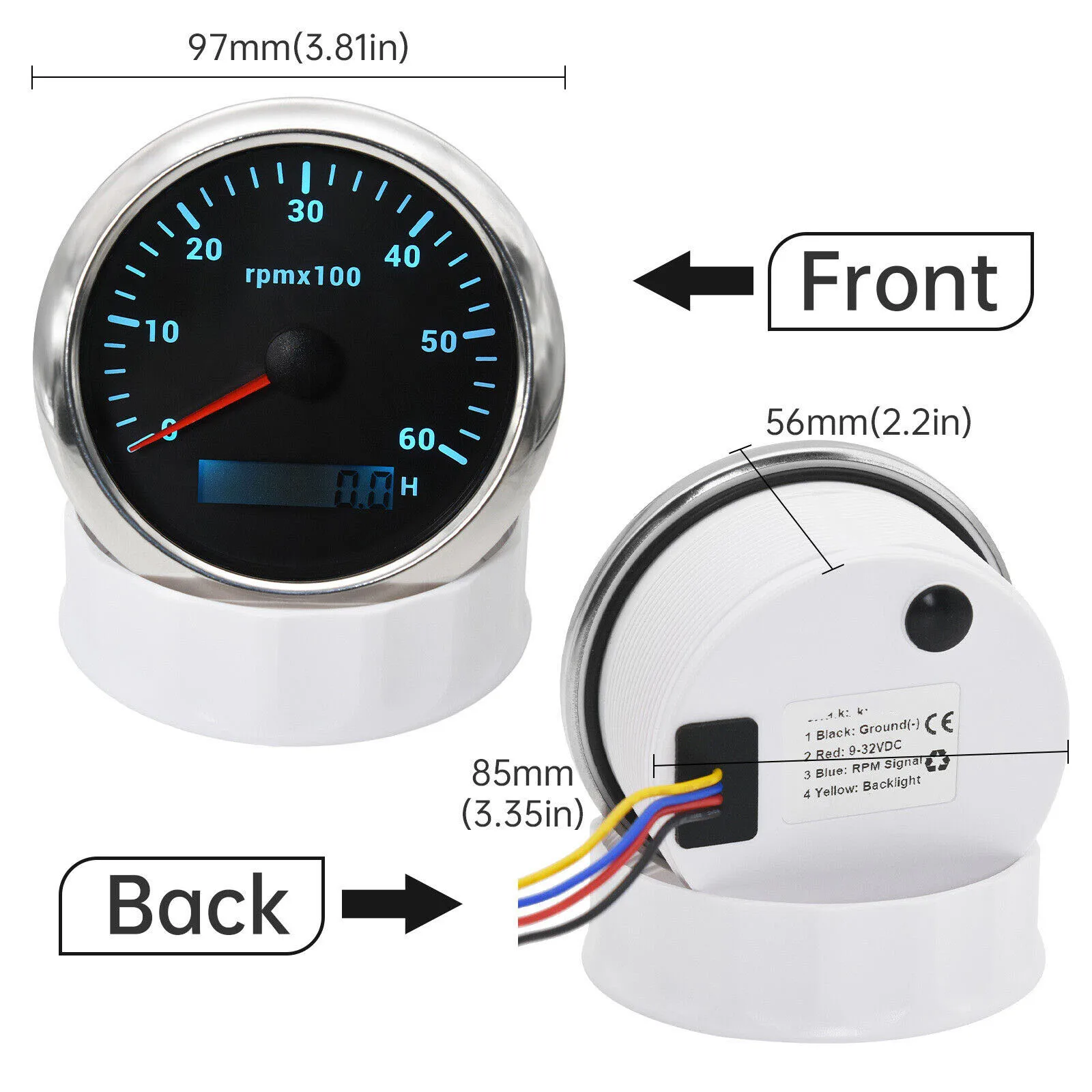 3 Gauge Set 85mm GPS Speedometer 0-200MPH Tachometer&85mm 4 in 1 Gauge for Boat Tachometer Specification:Size:85mmEngine hours: 0.0-99999.9HWorking voltage: 9-32VDCWaterproof and dustproof grade IP67.Working current: ??120mAWorking temperature: -30-70??Storage temperature: -40-85??Backlight :7 Color backlightIndicating Range: 0~6000 RPMColor:Black&SilverSignal : PulseSpeedometer SpecificationsDial: Black&SilverMaterial: Stainless Steel 316L Bezel + Anti-fog GlassInstall Diameter: Φ85mm or 3-3/8"Signal: GPSWorking Voltage: 9~32V DCWorking Current: ≤100mAOperating Temperature: -30?? ~ 75??Storage Temperature: -40?? ~ 85??Size: 12x8x12cm / 4.72×3.1×4.75 inchIP67 waterproof and dustproof gradeIndication Range: 0-200MPHBacklight:7 Colors Backligt4 IN 1 Gauge Input parameter(The sensor will be not included)Oil pressure sensor: 10~184ohmsTemperature sensor: 301~22ohmsFuel level sensor: 0~190ohml240~30ohms(can be adjusted. default 0-190Ohms)EnvironmentalOperating voltage: 9 to 32 Volts(DC)Power Consumption: <120mAOperating Temperature: -20~70degreesStorage Temperature: -30~80degreesEngine oil pressure: 0~10 barEngine temperature: 40~120 ??Battery voltage: 8-16VFuel level: 0~ 100%Degree of Protection lp671??Default input signal is 0~190ohm. when 7-Green connect to Ground. input signal change to 240~33ohm;2??Default input signal is 240~33ohm. when 7-Green connect to Ground. input signal change to 0~190ohm.Package Included:1X 85mm tachometer 1X 85mm GPS speedometer 1 x 85mm 4 in 1 Multifunctional Gauge1X GPS Cable1 x Cable1 x Installation Instruction