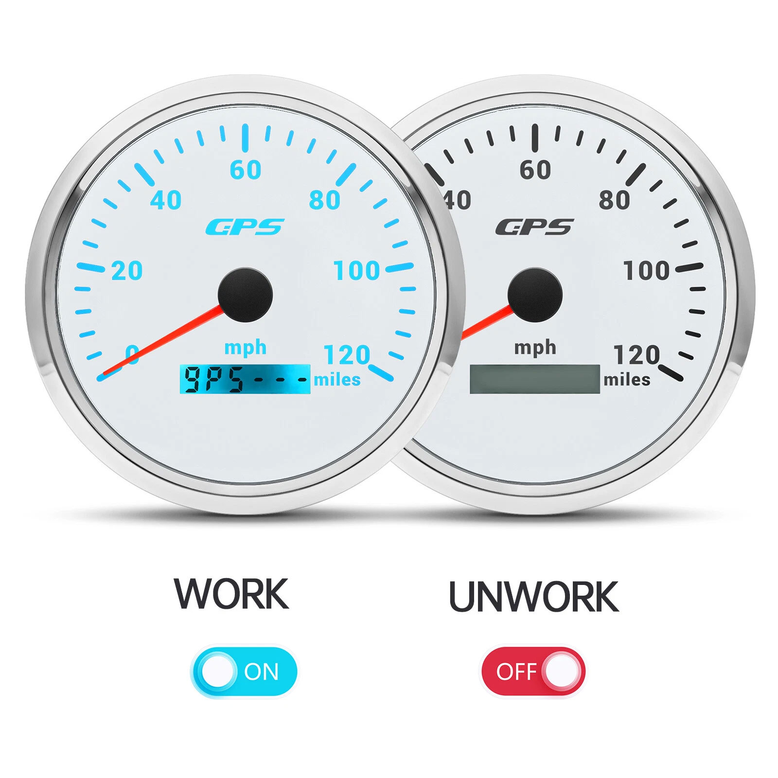 Feature:High-brightness LED backlight.316 stainless steel for long-term use even in acid-base. humid environment.IP67 waterproof and dust-proof grade.With curved glass( with anti-fog function).Suitable for all kinds of vehicle modification.Using stepper motor drive pointer. accurate display of the engine speed. and with the LCD display clear display mileage.Gauges have many kinds backlight color (red.yellow.orange.green.blue.purple.white).customers can adjust any color that you like.GPS Speedometer GaugeInstall Diameter: Φ110mm (4-3/8")Signal: GPSWorking Voltage: 9~32V DCSize: 12x8x12cm/4.72×3.1×4.75 inchUnits: MPHColors:Black&SilverIndication Range: 0-120MPHBacklight: 7Colors LEDPackage Includes:1X 110MM GPS Speedometer Gauge1X Wire Harness1X GPS Antenna1X Installation Instruction
