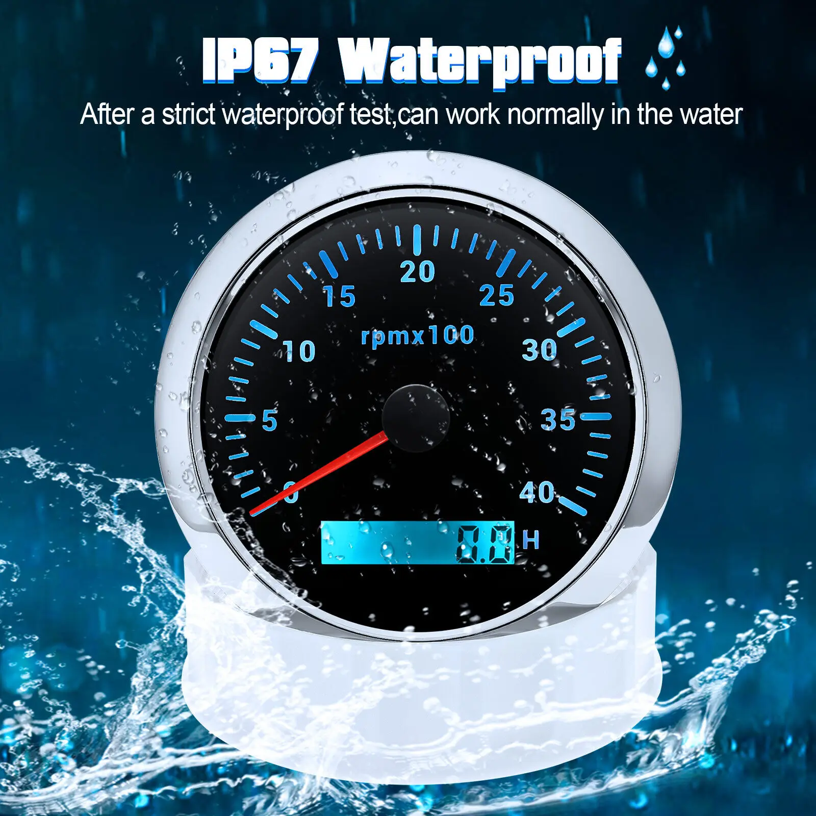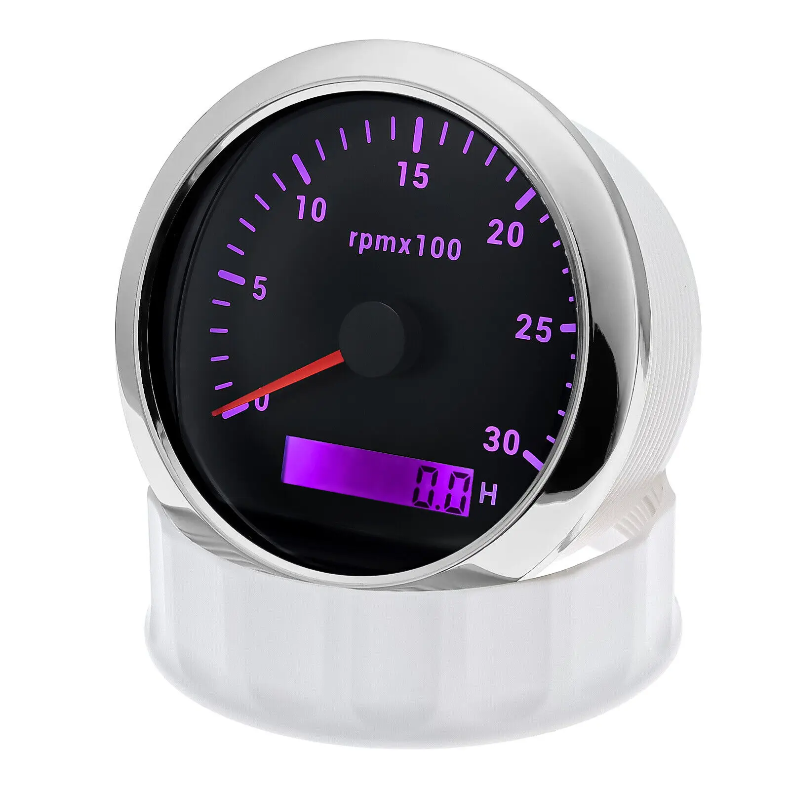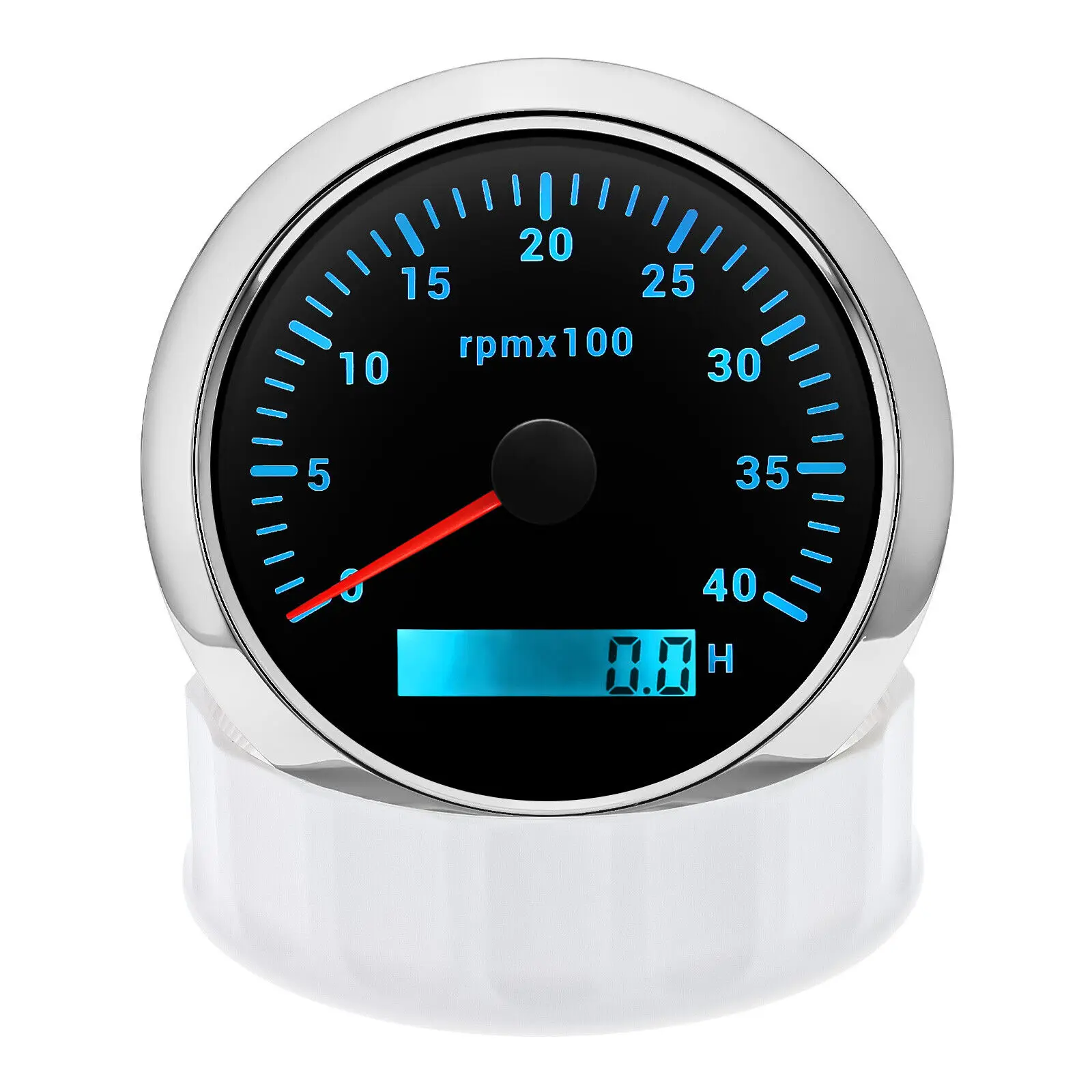 4000 RPM Black 7 Digital Backlights 85mm Diesel Tachometer RPM Gauge REV Counter With Hour Meter