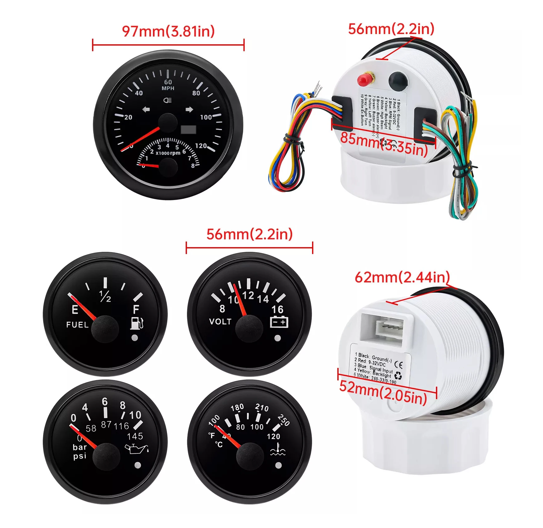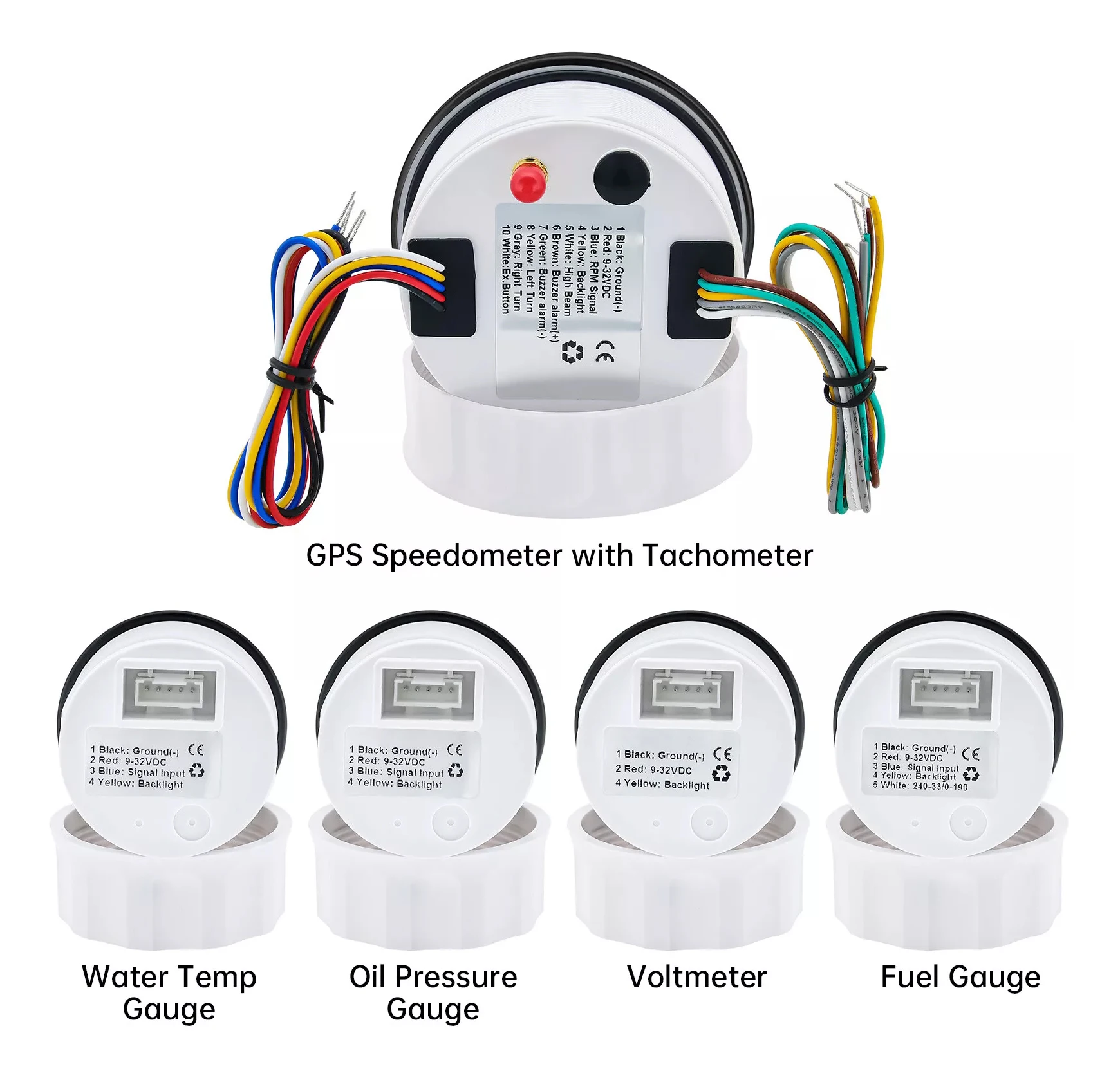 5 Gauge Set 85mm GPS Speedometer 120km/h with Tacho&Fuel/Oil/Temp/Volt for Boat