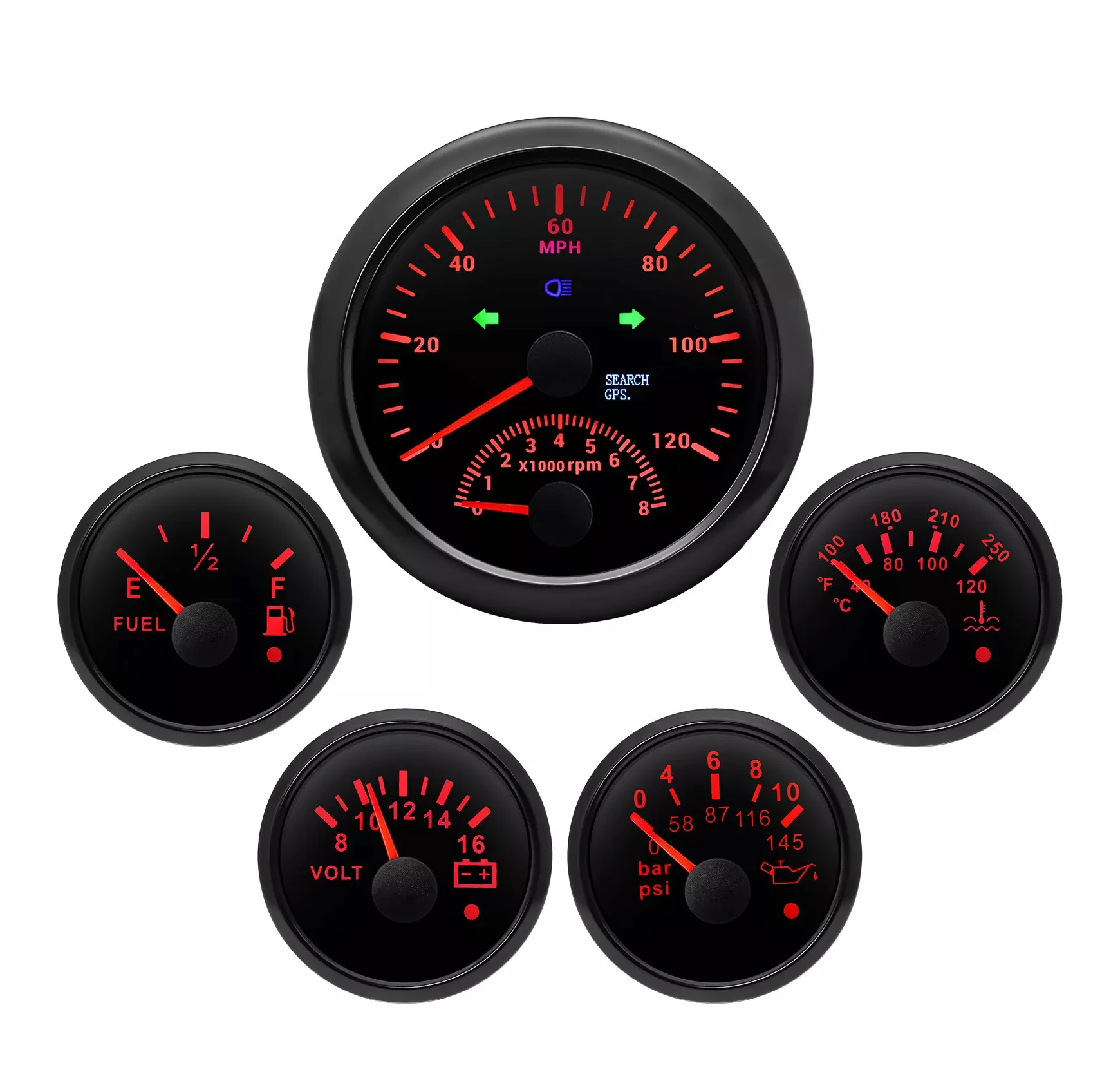 5 Gauge Set 85mm GPS Speedometer 120km/h With Tacho&Fuel/Oil/Temp/Volt for Boat