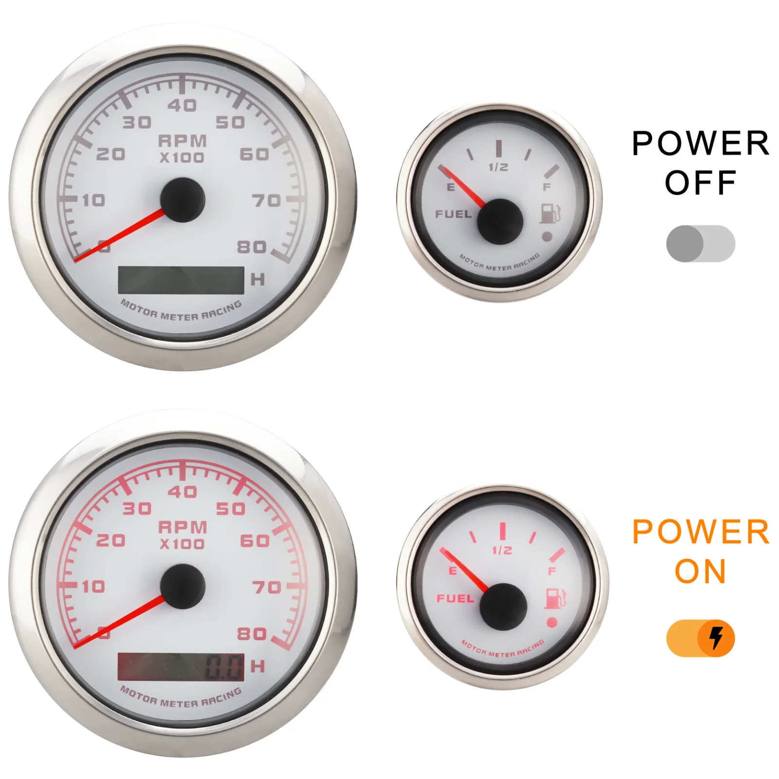 5 Gauges Panel Set White Faceplate 8 LED Marine Engine Instrument Gauge Meter Panel Gauge 3 Sensors