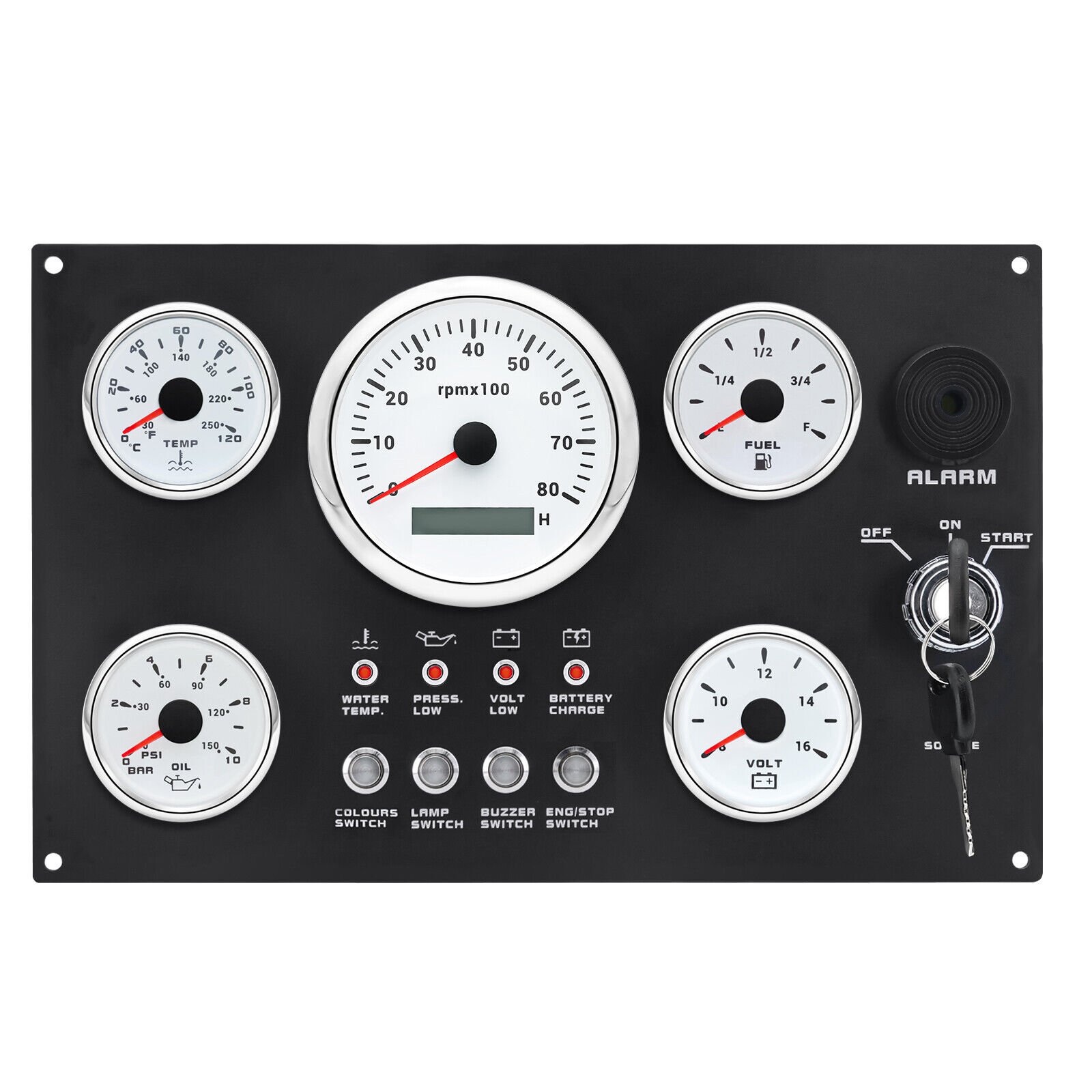 5 Gauges Set with Instrument Panel 0-3000 RPM Waterproof for Marine Boat Yacht