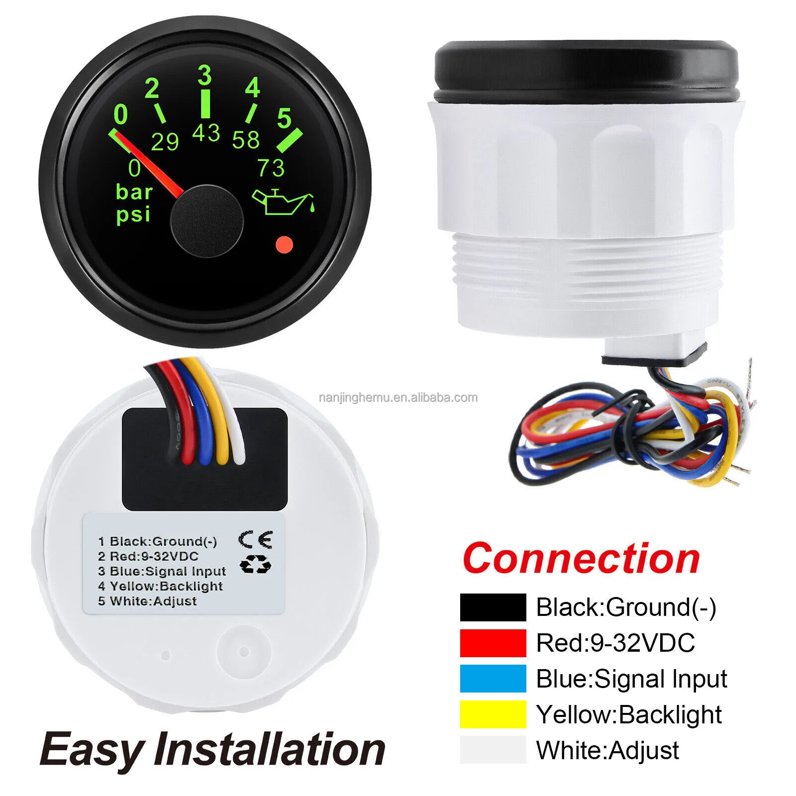 52mm 0-10Bar Pressure Gauge Meter Gauge for Boat Marine With Sensor 1/8 NPT