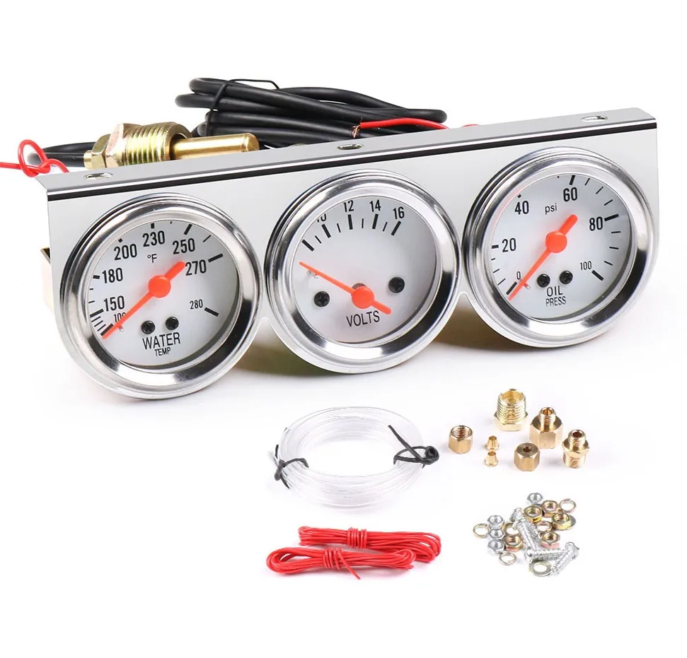52mm 3 in 1 Triple Gauge Kit Auto Meter POD Car Water Temp Oil Pressure Volt Gauge
