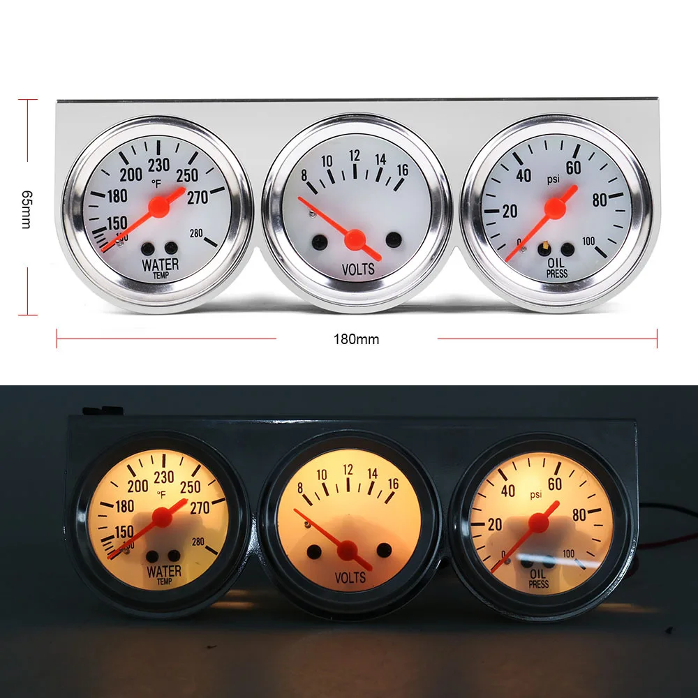 Item name | 52mm 3 in 1 Triple Gauge Kit Auto Meter POD Car Water Temp Oil Pressure Volt Gauge |
