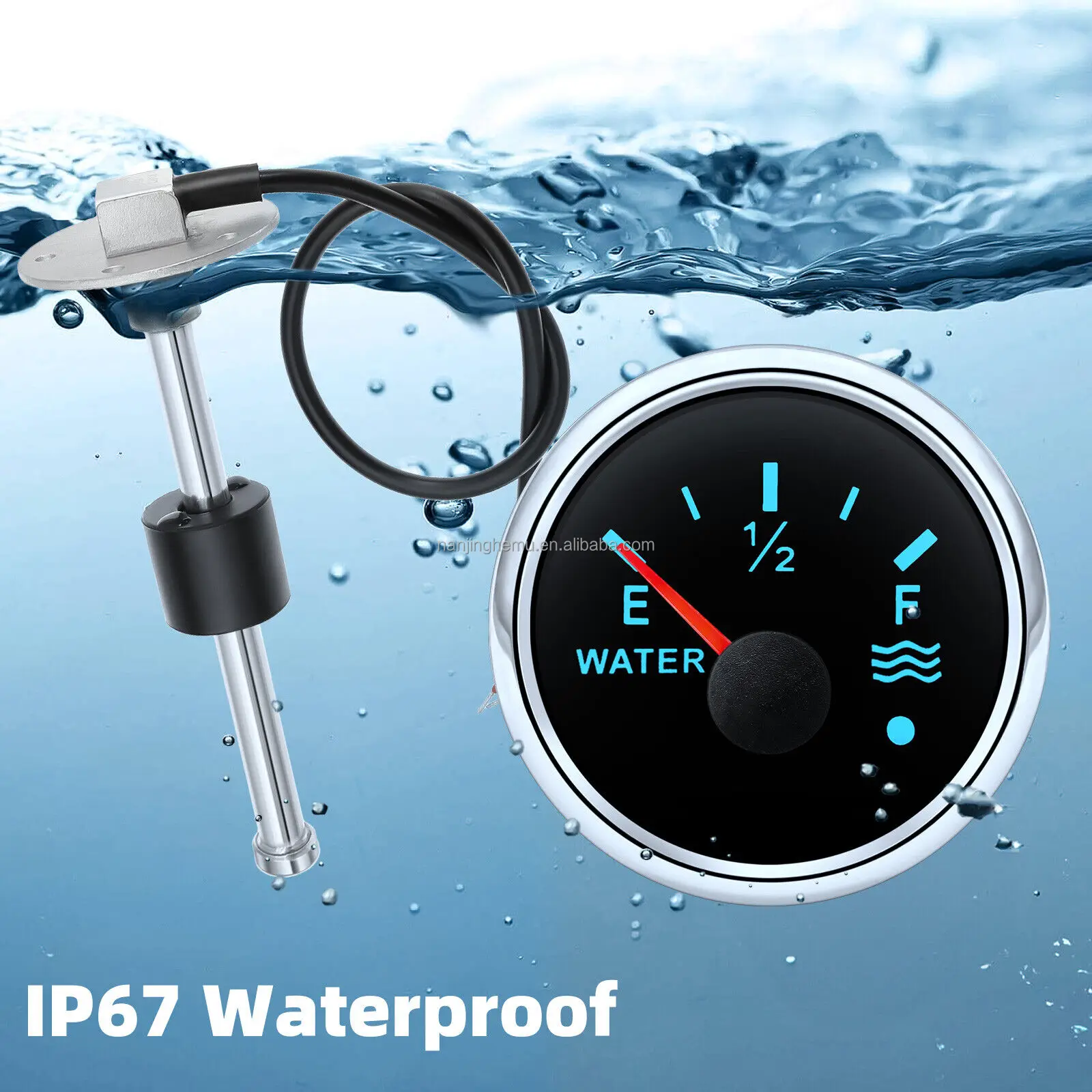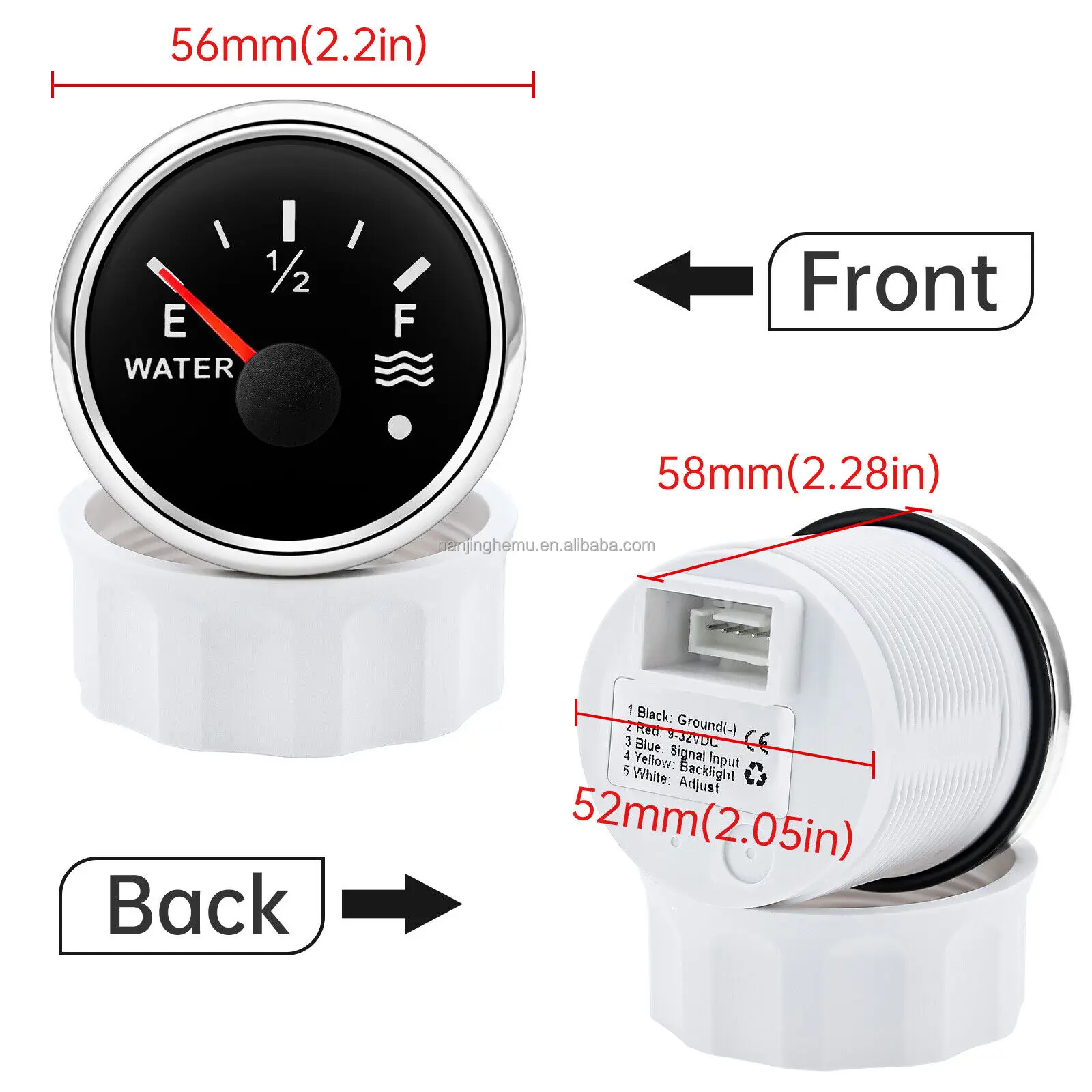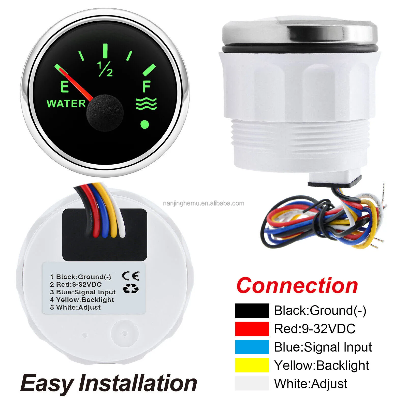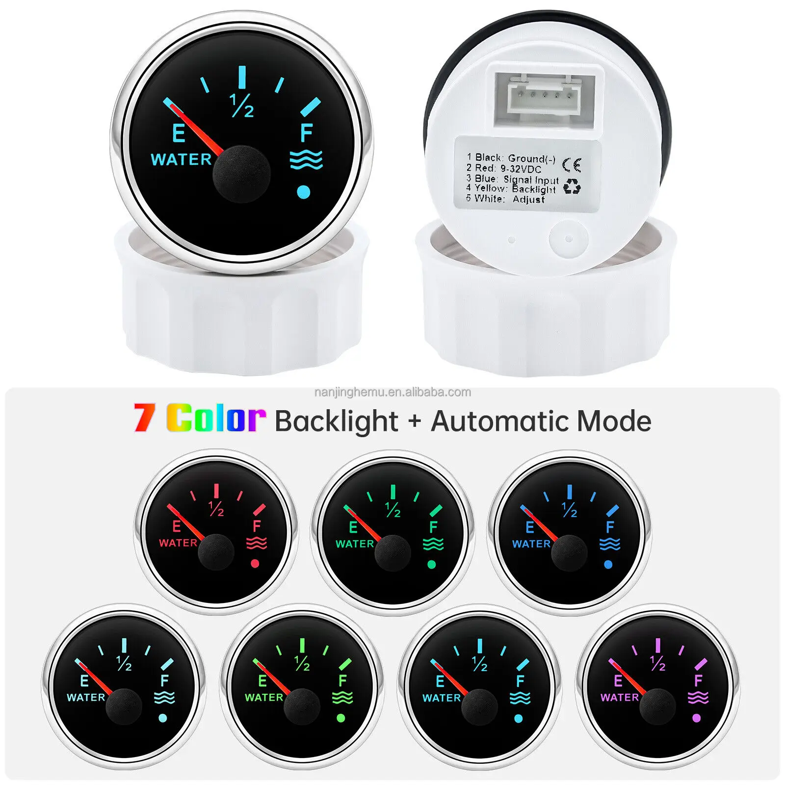 This gauge have 7 backlight color : red??green??blue??yellow??olivine??orange??purple. totally 7kinds different backlight color. it will change automatically every 1 minute.Fantastic waterproof Function: Can work in the water.You can fix only one color you like by pressing the gauge back "set" button.Gauges front cover use stainless steel 316L for long-term use even in acid-base and humid environment.IP67 waterproof and dustproof grade.Stepper motors used for full range of stepping gauges.great feature with its less power consumption.longer life.higher precision etc.With curved glass (with anti-fog function).With ultra-wide working voltage design (long-term operating voltage:9-32v.maximum up to:36v).There is a snap together with the harness connector.for best and firmly connected.in order that the gauges could work even in strong.viberation.products can be used for the engines/generating units.ships.construction machinery.agricultural machinery.automotive modification etc.Installation instructions:1.Before installation. firstly. to open a hole 52mm of the panel .make sure there is a space with (55mm backyard of panel)as well.2. Put the gauge in the hole and screw down.Connection: Red–+9-30VDCBlue–Signal InputYellow–Backlight(+)Black–Ground(-) Package List:1x Fuel Level Gauge1x Wiring Harness1x Instruction Manual
