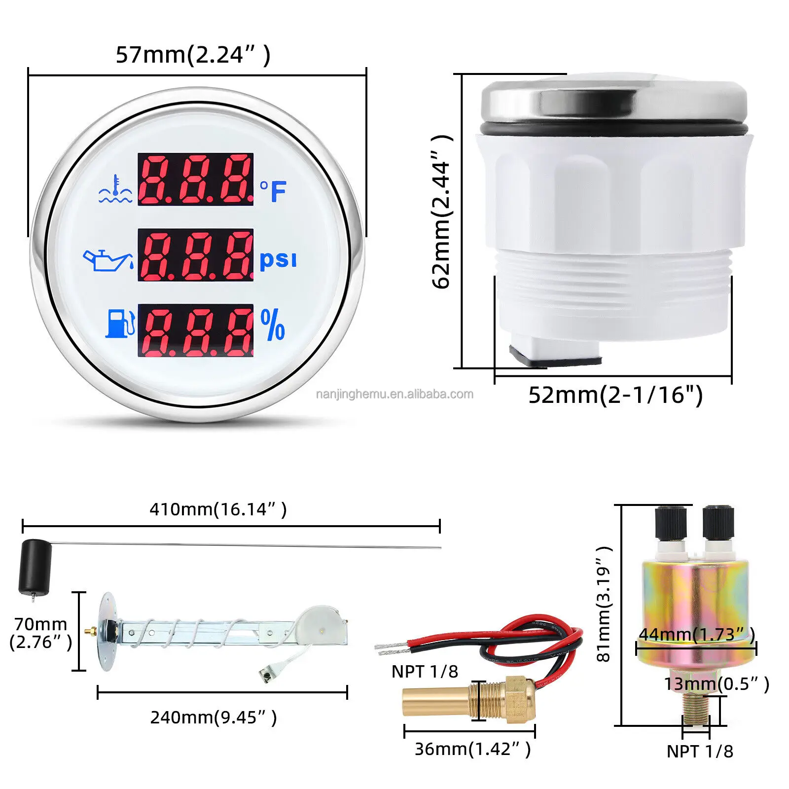 Product Name | 52mm Boat 3 In 1 Multifunction Gauge Fuel Level Water Temp Oil Pressure w/Sensor |
