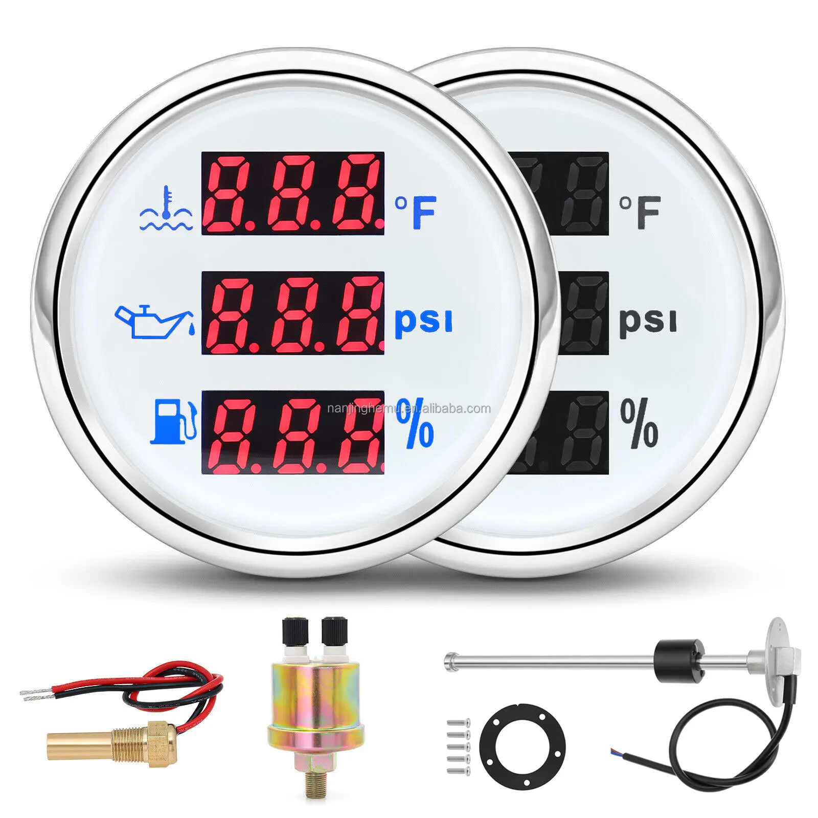 52mm Boat 3 In 1 Multifunction Gauge Fuel Level Water Temp Oil Pressure w/Sensor