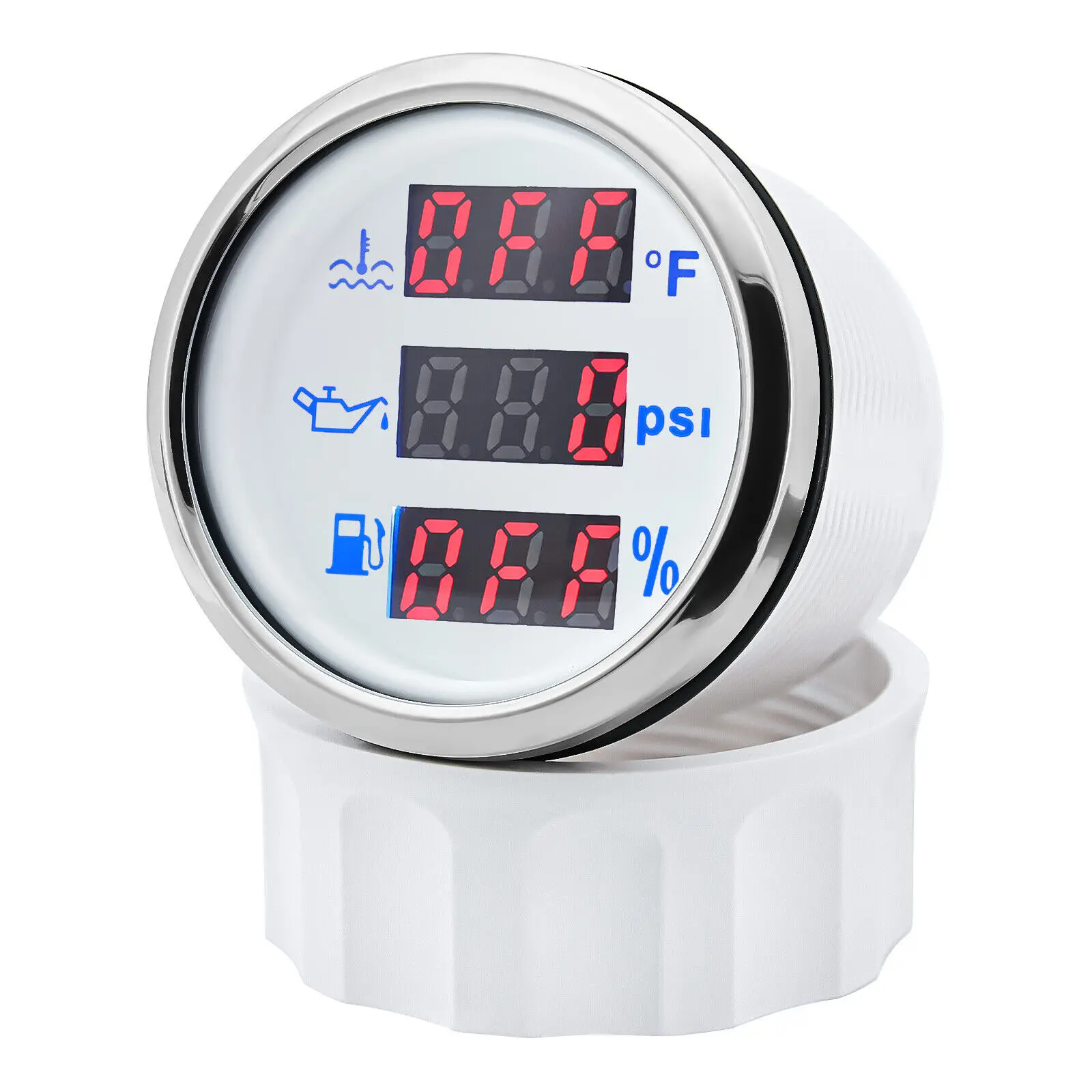 52mm Boat 3 In 1 Multifunction Gauge Fuel Level Water Temp Oil Pressure w/Sensor