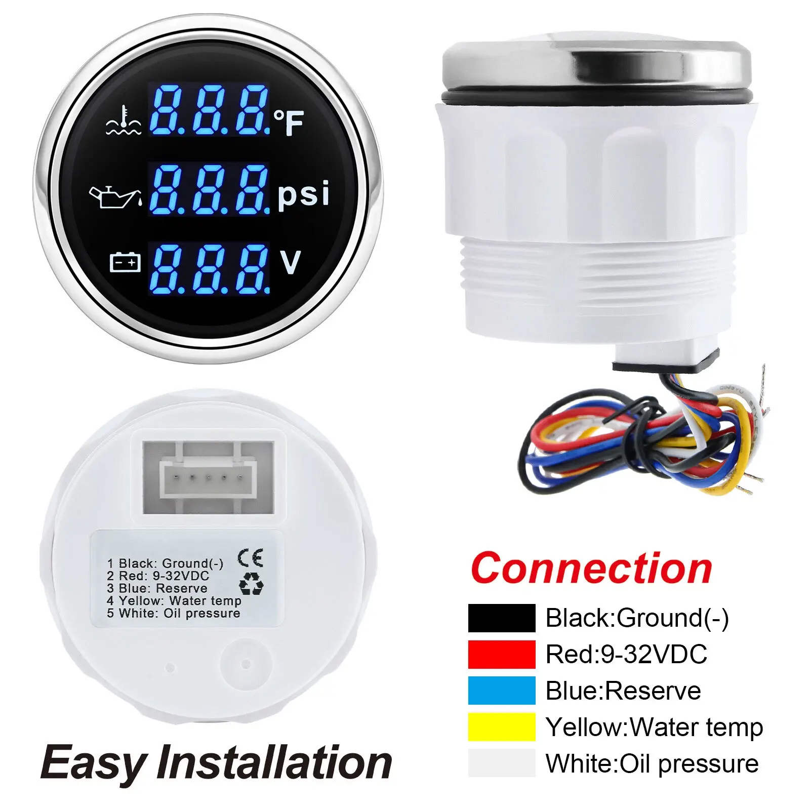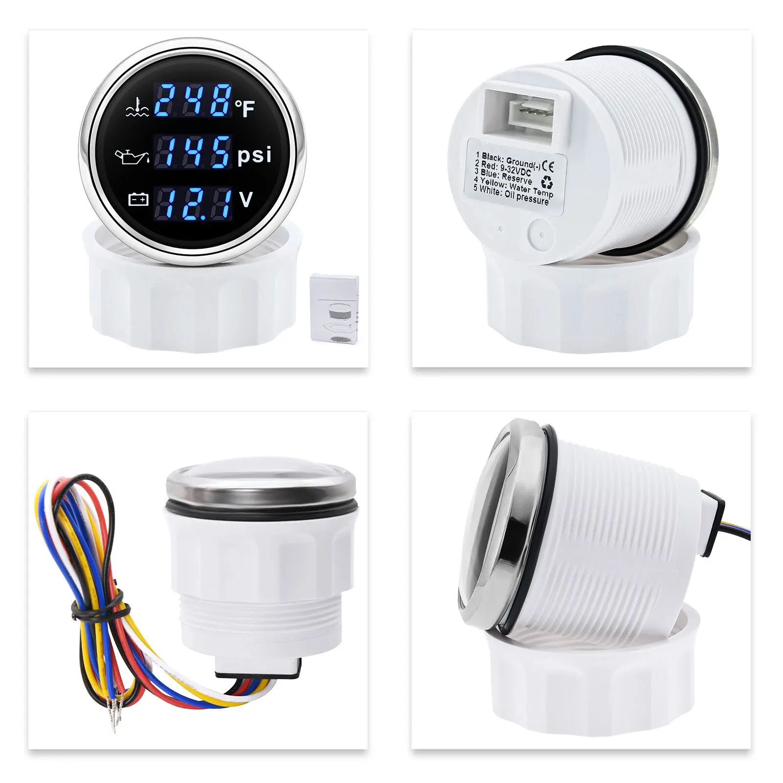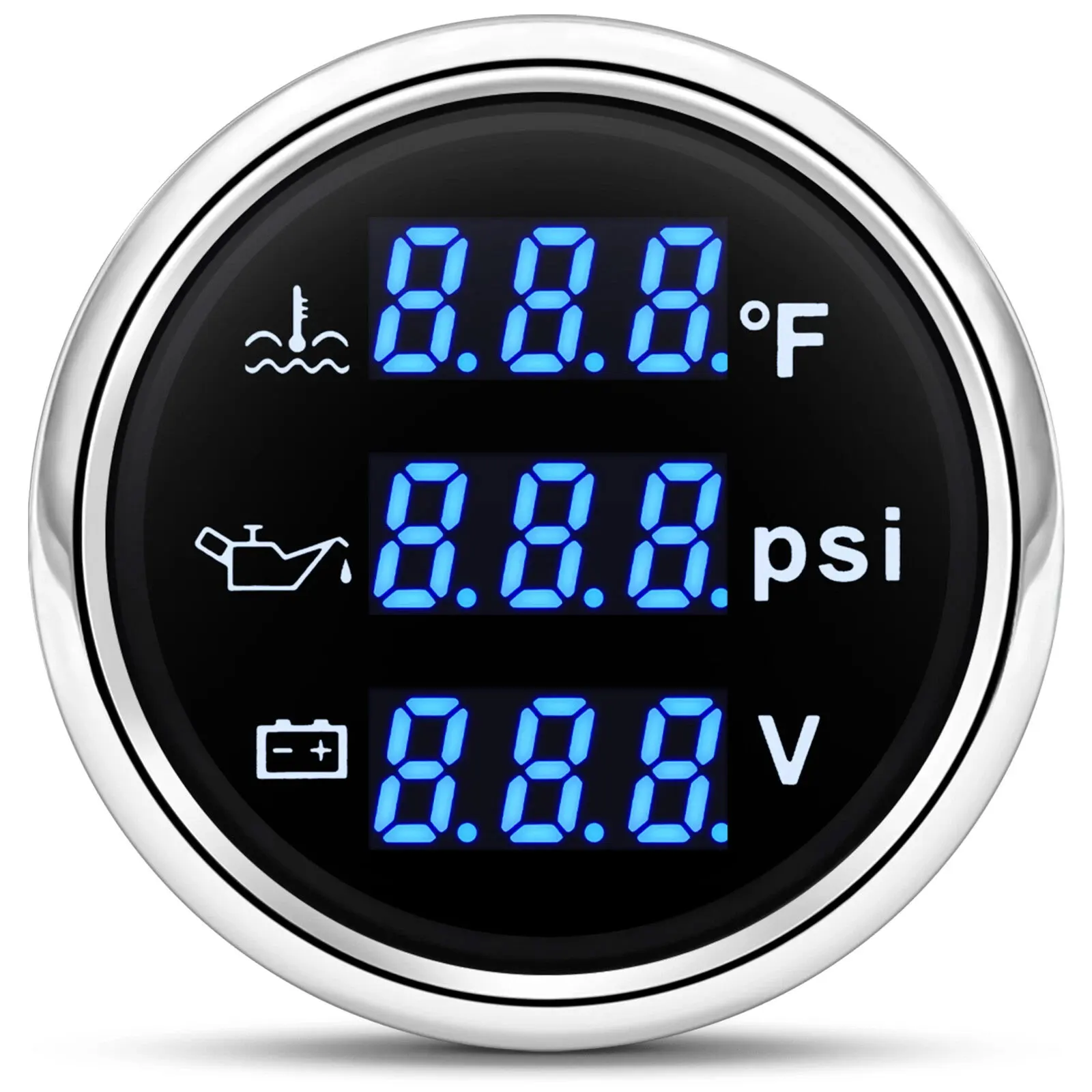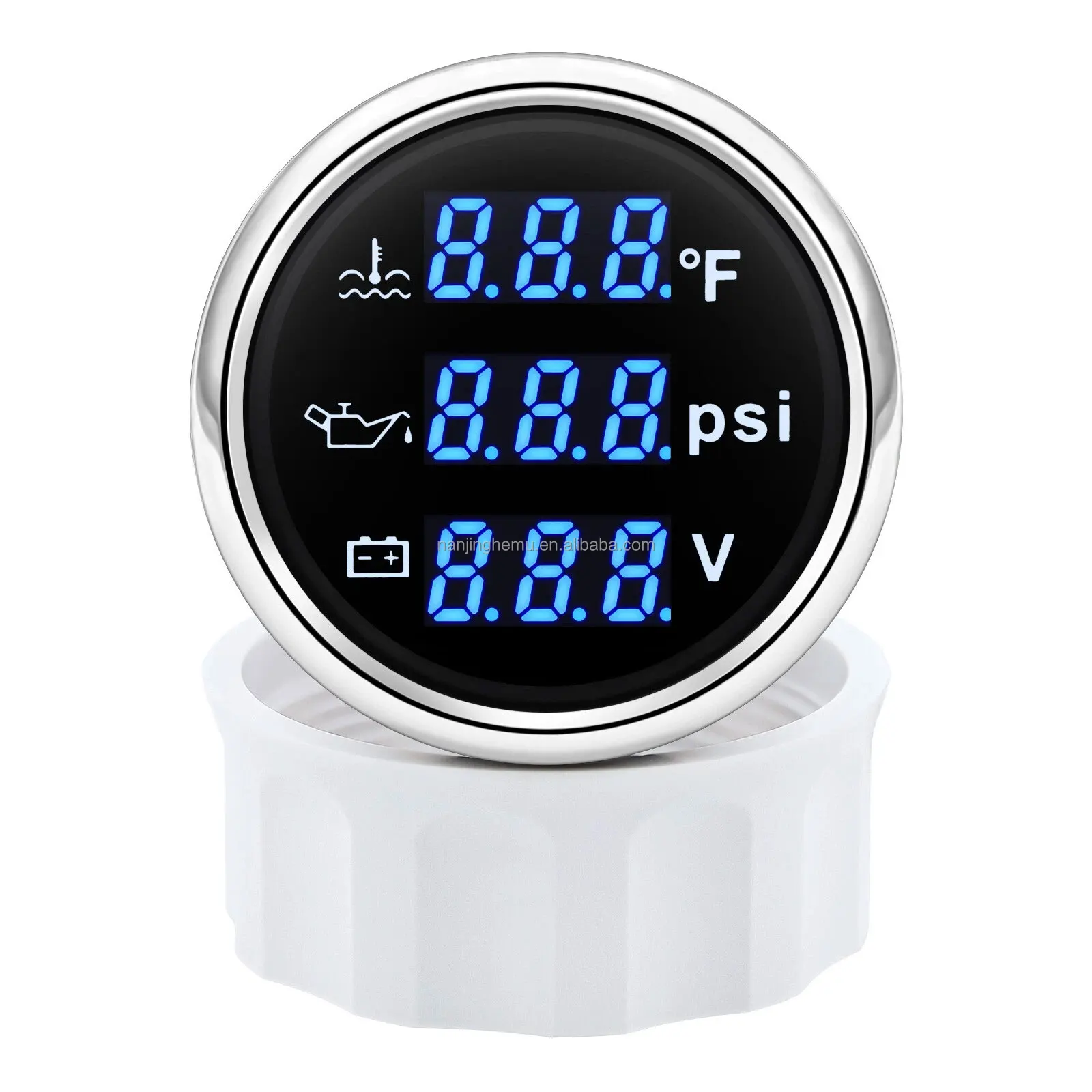 52mm Boat Car 3 in 1 Gauge Digital Water Temp Oil Pressure Voltmeter with Sensor
