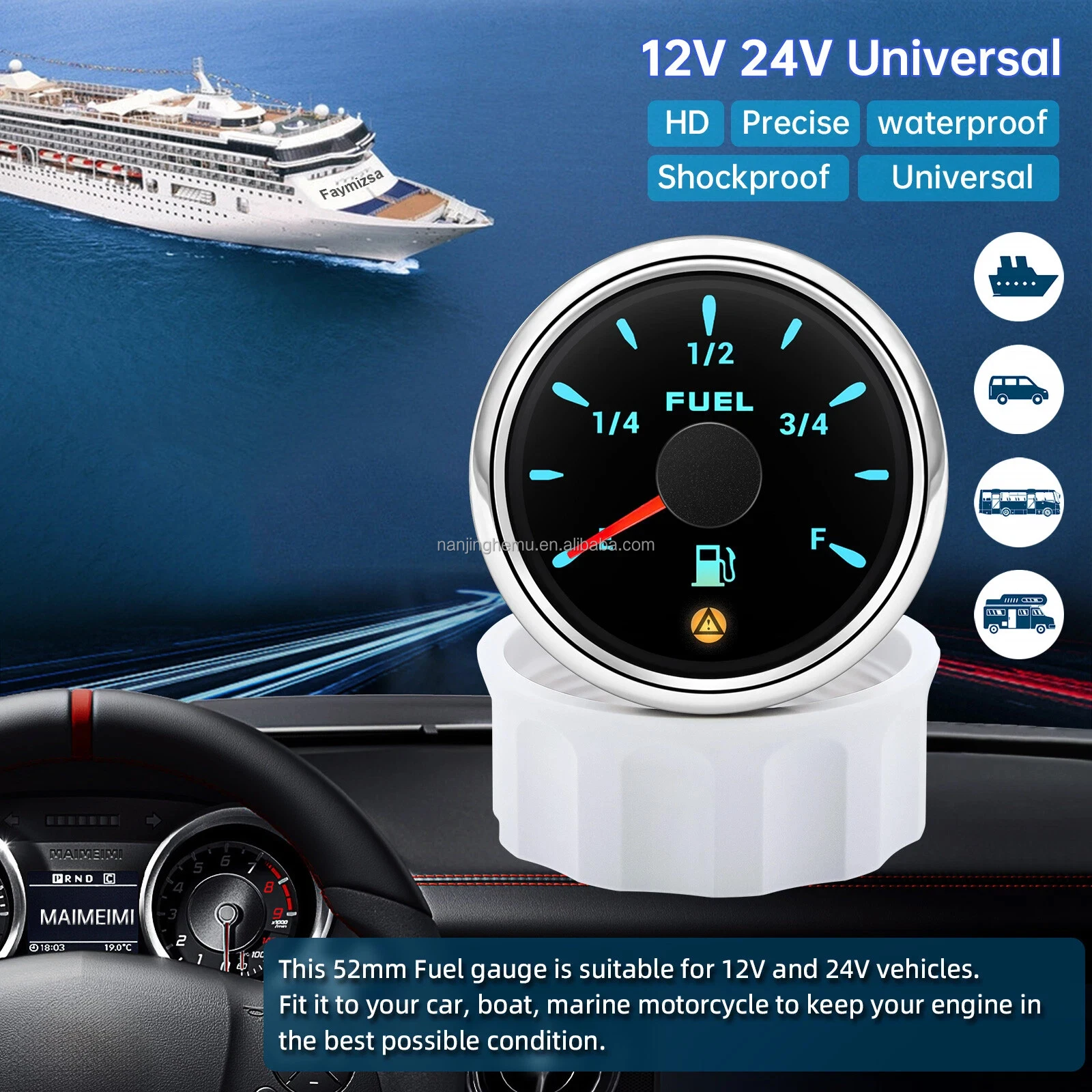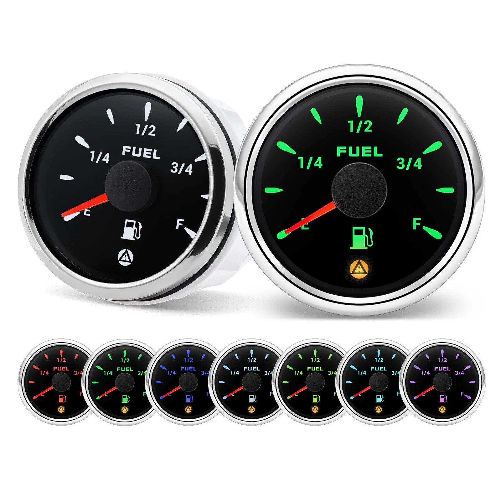 52mm Boat Fuel Level Gauge 240-33/0-90/0-190ohm/10-180/240-30ohm 7 Colors LED