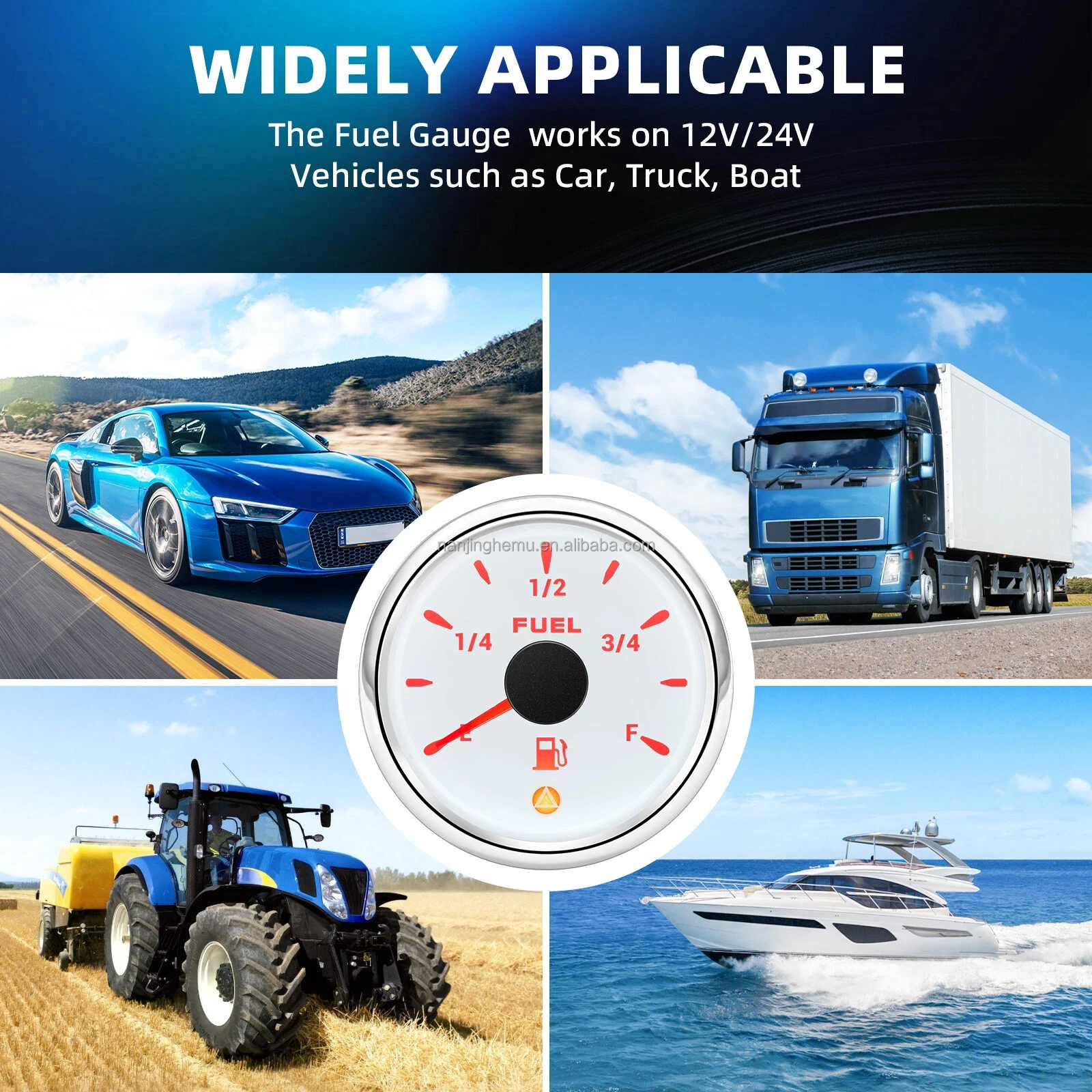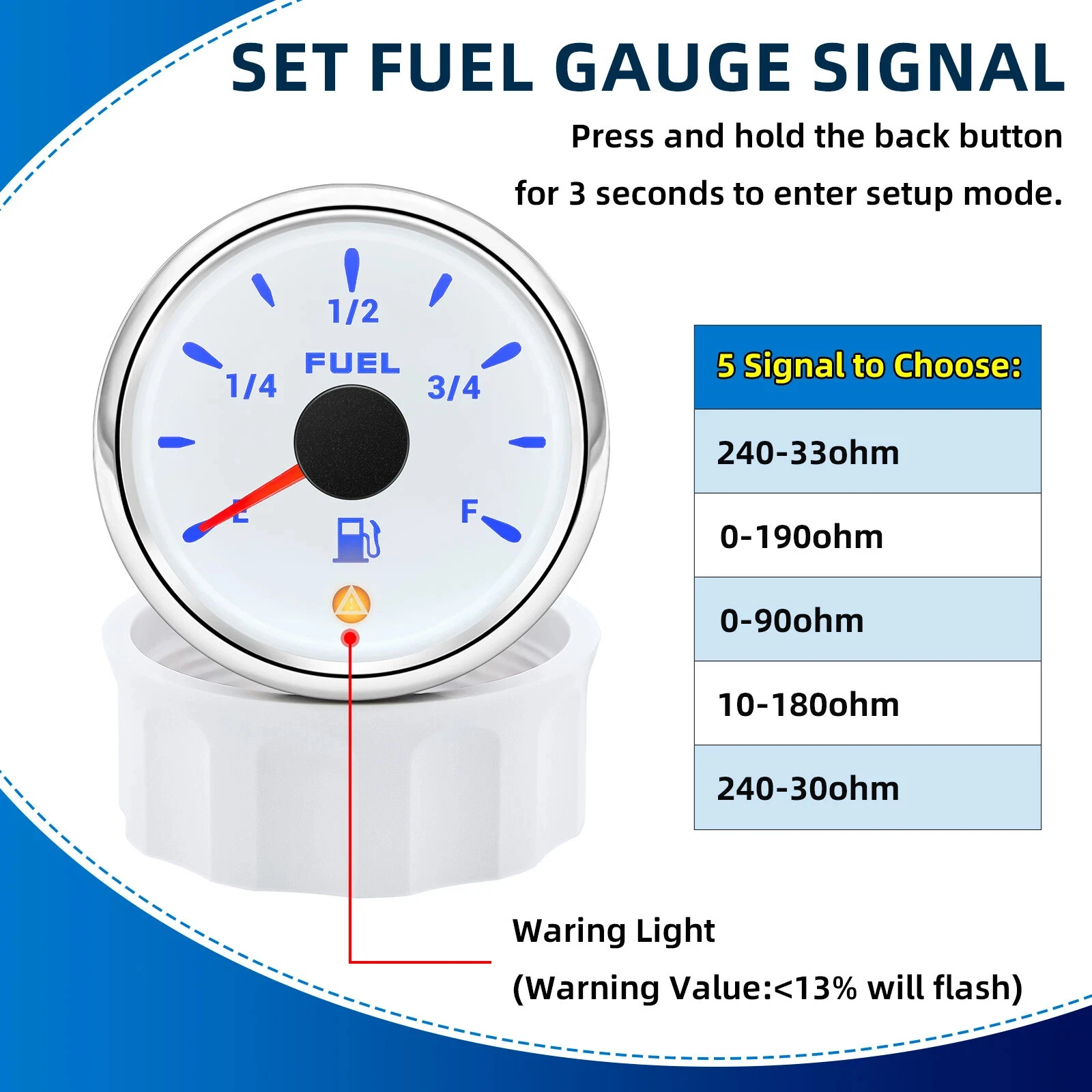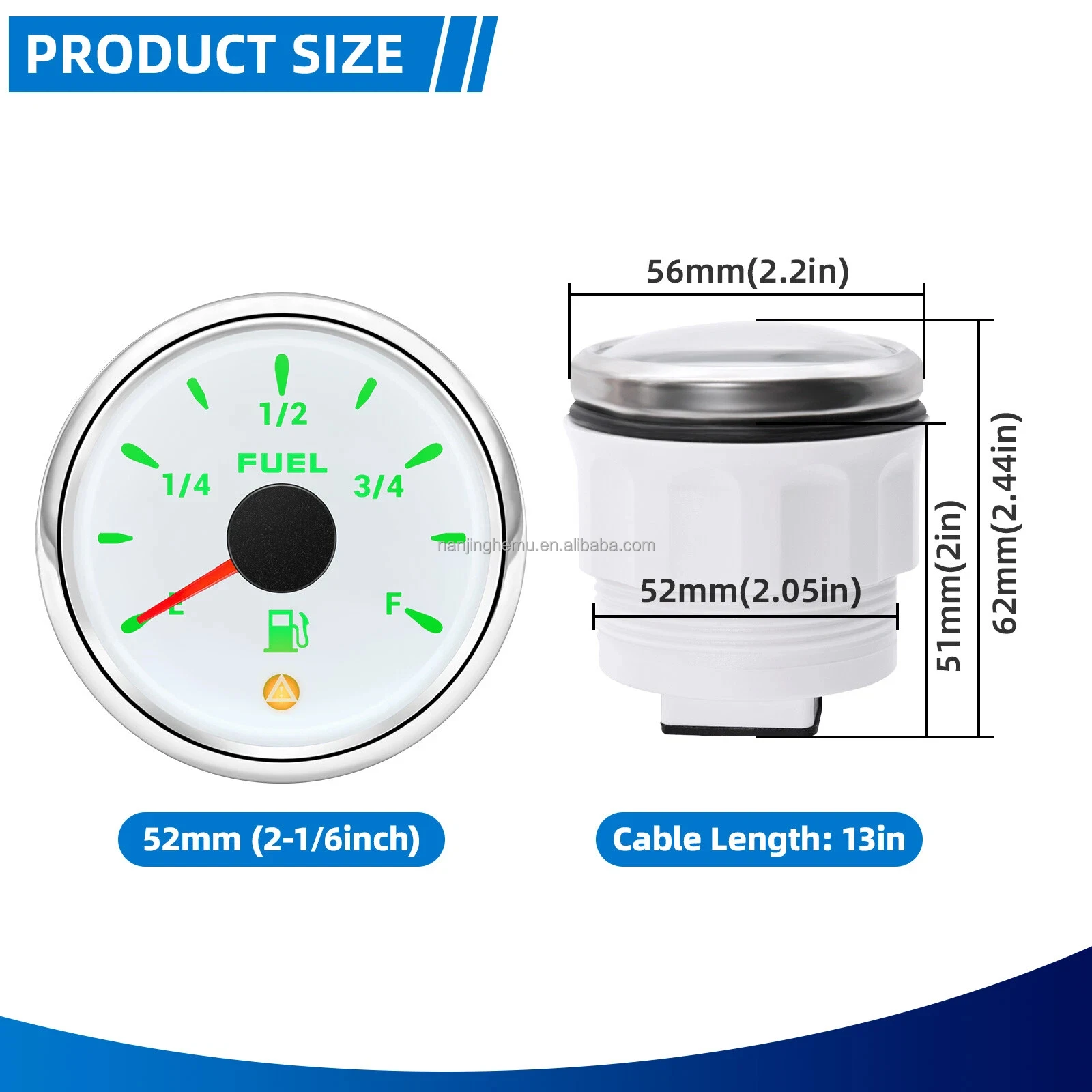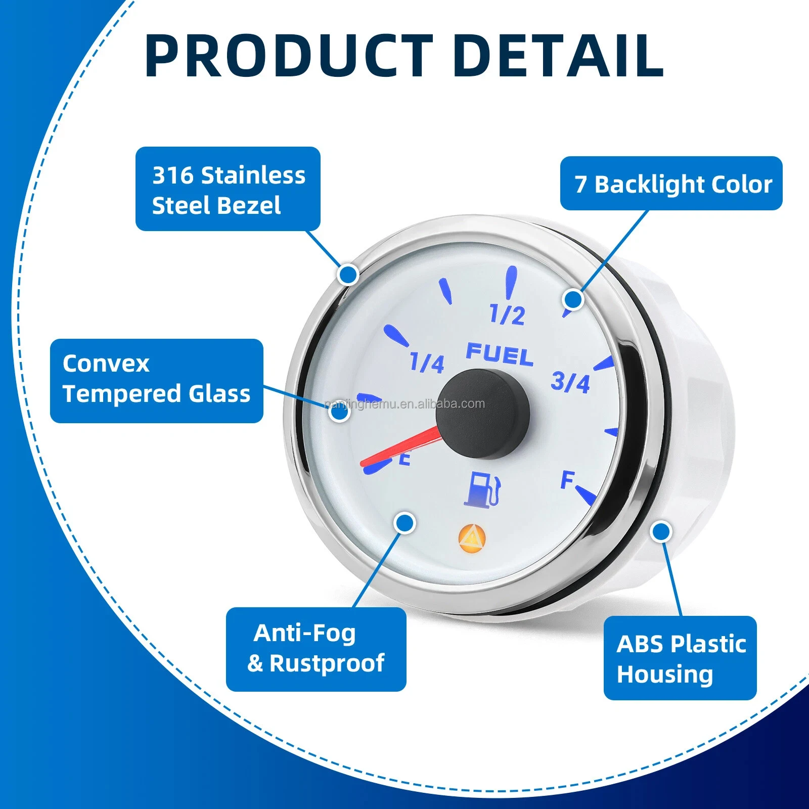 52mm Boat Fuel Level Gauge 240-33ohms 0-90ohms 0-190ohmohms 10-180ohms 240-30ohm 7 Colors LED