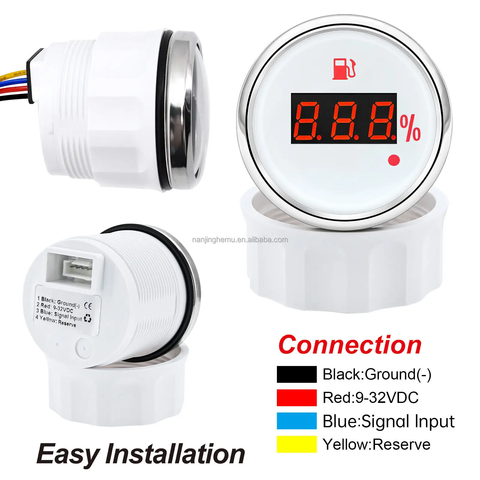 Connection:Black — Ground(-)Red — 12V(+)Blue — Signal inputYellow — nagative(-) [If your fuel sensor is for 240-33ohms.. yellow cable no need to connect. If your fuel sensor is 0-190ohms. yellow cable connect to Ground please] Product Specifications:1. The front cover is 316 stainless steel (corrosion resistance is significantly better than 304)2. The shell uses PBT+GF20%. melting point 220°C. high temperature resistance. chemical and oil resistance.3. Curved tempered glass (strength is 3~5 times higher than ordinary glass)4. High-transparency curved PC forms a double-layer anti-fog junction with curved glass structure. anti-fog performance is much higher than single-layer glass coated anti-fog agent.5. The dial is made of PC material. high temperature resistance and high elastic coefficient.6. Waterproof and dustproof grade IP67. Features:1. 100% adopts imported MCU with stable performance.2. It can match a variety of sensor signals. in addition to 0~190 ohm /240~33 ohm. 0~5V/0.5~4.5V. 4~20mA. any analog signal can also be connected.3. The instrument comes with an alarm signal. no sensor is required to provide an additional alarm signal.4. With sensor disconnection alarm function. sensor disconnection display "OFF5. Using high-brightness LED as backlight. high brightness and long life.6. Accept customer's requirements to customize. Package Include:1x Fuel Level Gauge1x Installation Instruction1x Wire Cable Alarm light:– Alarm mode: red indicator light flashes- Warning Alarm: When fuel level low than 13%. the warning light will flash. Wholesale and drop shipping are both welcomedFor wholesale. we will offer the discount or free express shipping which only takes 3-7 days to arrive.For drop shipping. We could send the goods to your customers directly and won't leave information about us if youd like to.