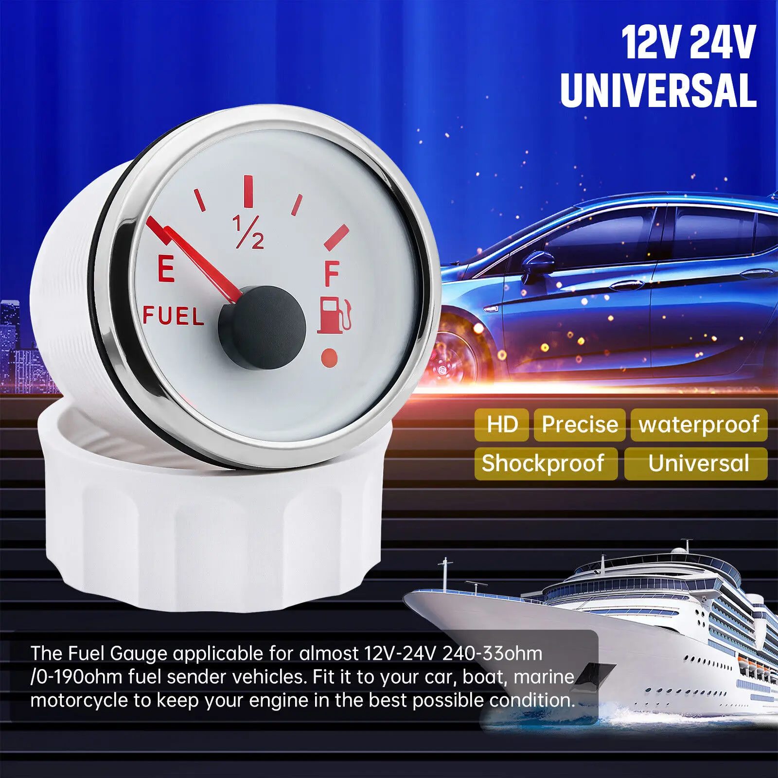 52MM Fuel Level Gauge 0-190ohms Indicator Tank Meter Red Colors For Car Truck Boat