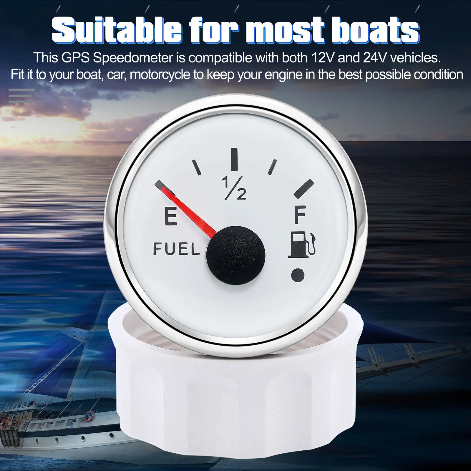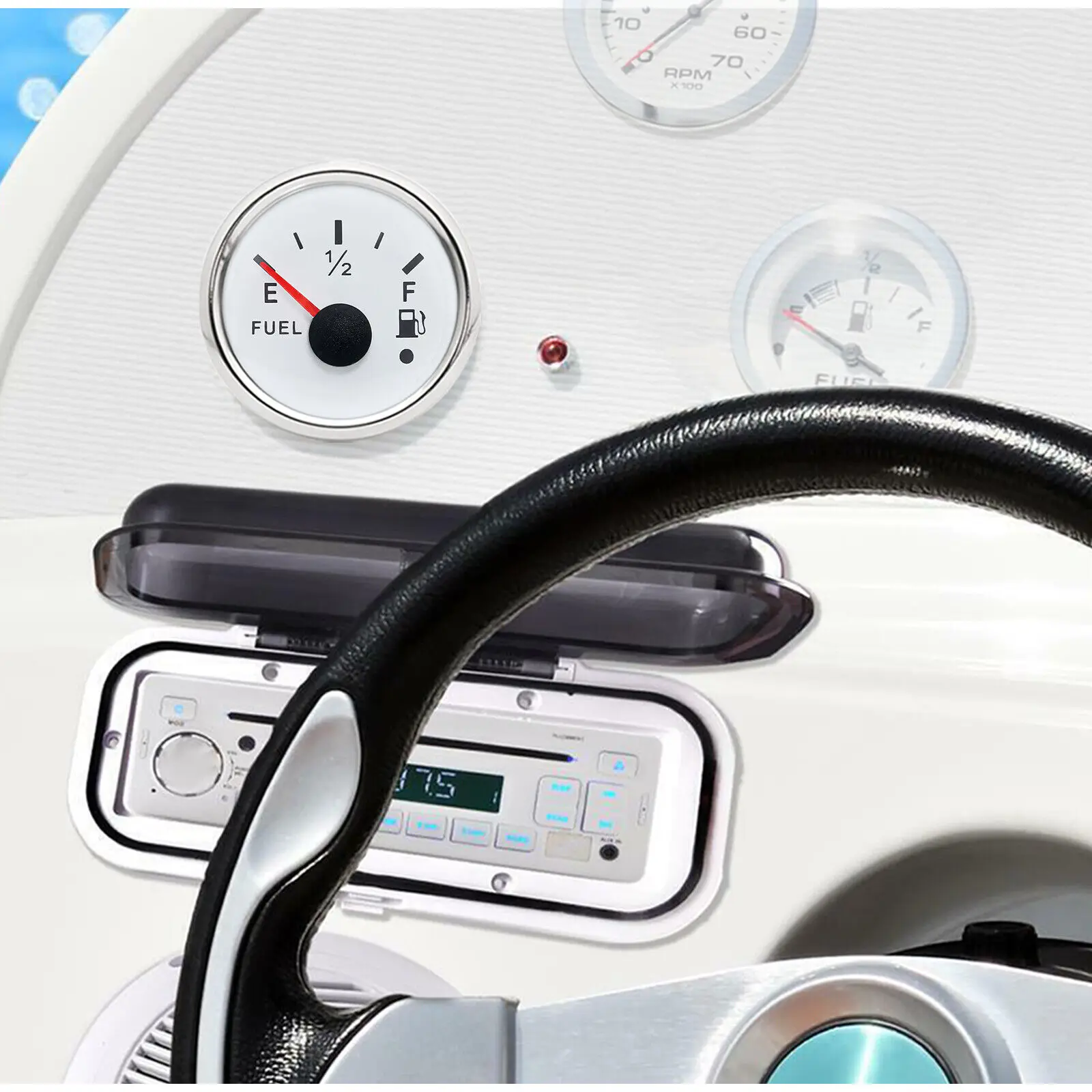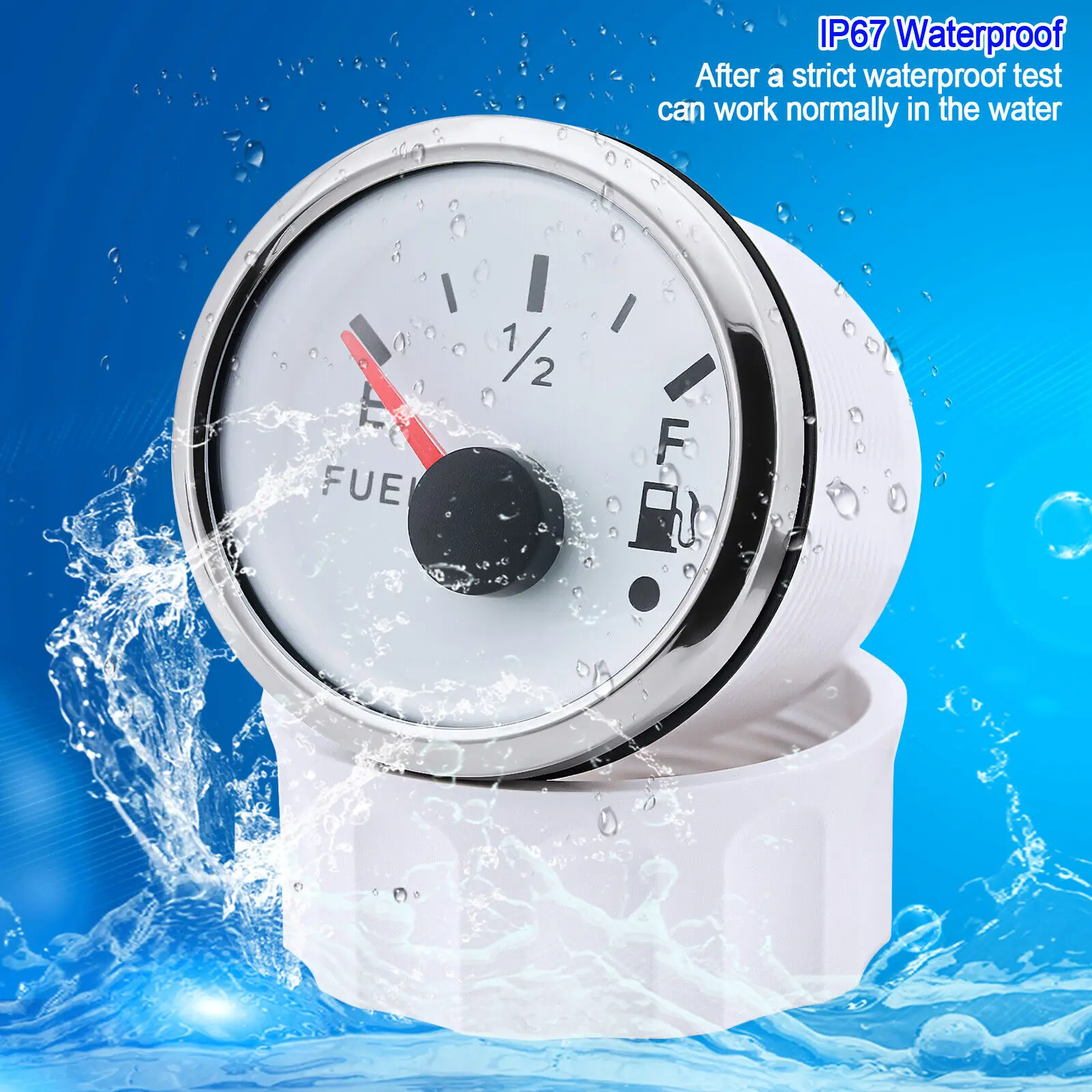 Fuel gaugeThis is a high quality fuel level gauge.for most fuel level sensors Description:Fit For: Car Truck Motorcycle ATV UTV Marine BoatFace Color: WhiteBezel Materials: Stainless SteelIndicating Range: 240-33ohms (240–empty 33–full)Operating Voltage: 9-30VDCOperating Current: ≤60mAOperating Temperature: -30~+75 ??Storage Temperature: -40~+85 ??Install Diameter: 52mm(2-1/16'')Grade Of Protection: IP67Package Method: Neutral boxWhen the fuel level is lower than 13%. the warning light will flash Features:-100% Brand new and high quality.-Excellent anti-fogging performance.-316L Stainless steel bezel with curve glass.-Easy installation with multi-plug socket connection design.-White ground design with red backlightInstallation instructions:1.Before installation. firstly. to open a hole 52mm of the panel .make sure there is a space with (55mm backyard of panel)as well.2. Put the gauge in the hole and screw down.Connection: Red–+9-30VDCBlue–Signal InputYellow–Backlight(+)Black–Ground(-) Package List:1x Fuel Level Gauge1x Wiring Harness1x Instruction Manual
