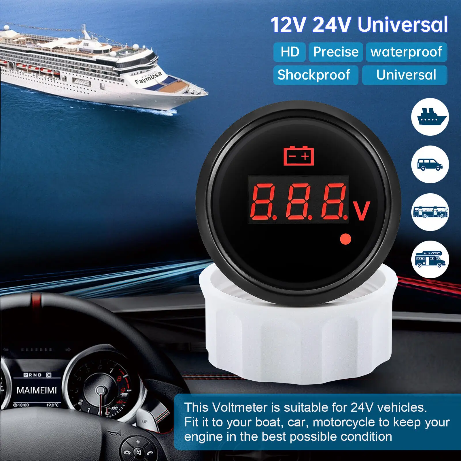 Name | 52mm LCD Voltmeter Voltage Gauge 8-32V With Red Backlight for Marine Boat Car |
