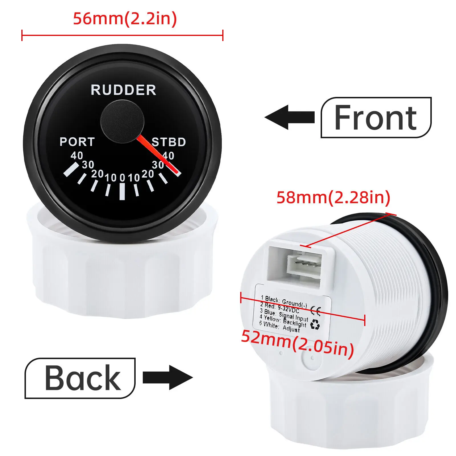 52mm Marine Rudder Angle Gauge Indicator With Sensor for Boat Yacht 0190ohms
