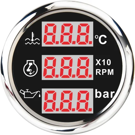 1.316L stainless steel for long-term use even in acid-base. humid environment .2.IP67 waterproof and dustproof grade3.Stepper motors used for full range of stepping gauges. great feature with its less power consumption. longer life. higher precision. etc.4.With curved glass (with anti-fog function)5.With ultra-wide working voltage design( long-term operating voltage: 9-32V. Maximum up to: 36V (≤ 1 minute)).6.Backlight for standard is red(Gauge with multi-color LED light of back-lit illumination (red. yellow. green. blue. purple. white). but various back light could be customized according to customer's requirement.7.Ultra-low power design— The working current of most of the instruments is about 40mA8.Customized color for stainless steel is providedProducts can be used for the engines/generating units. ships. construction machinery. agricultural machinery. automotive modification. etc.