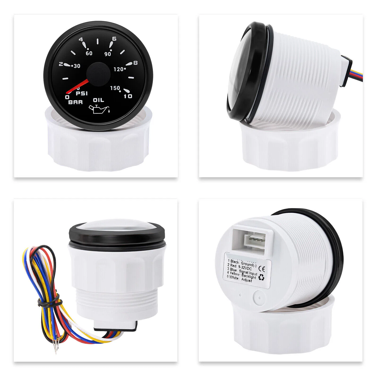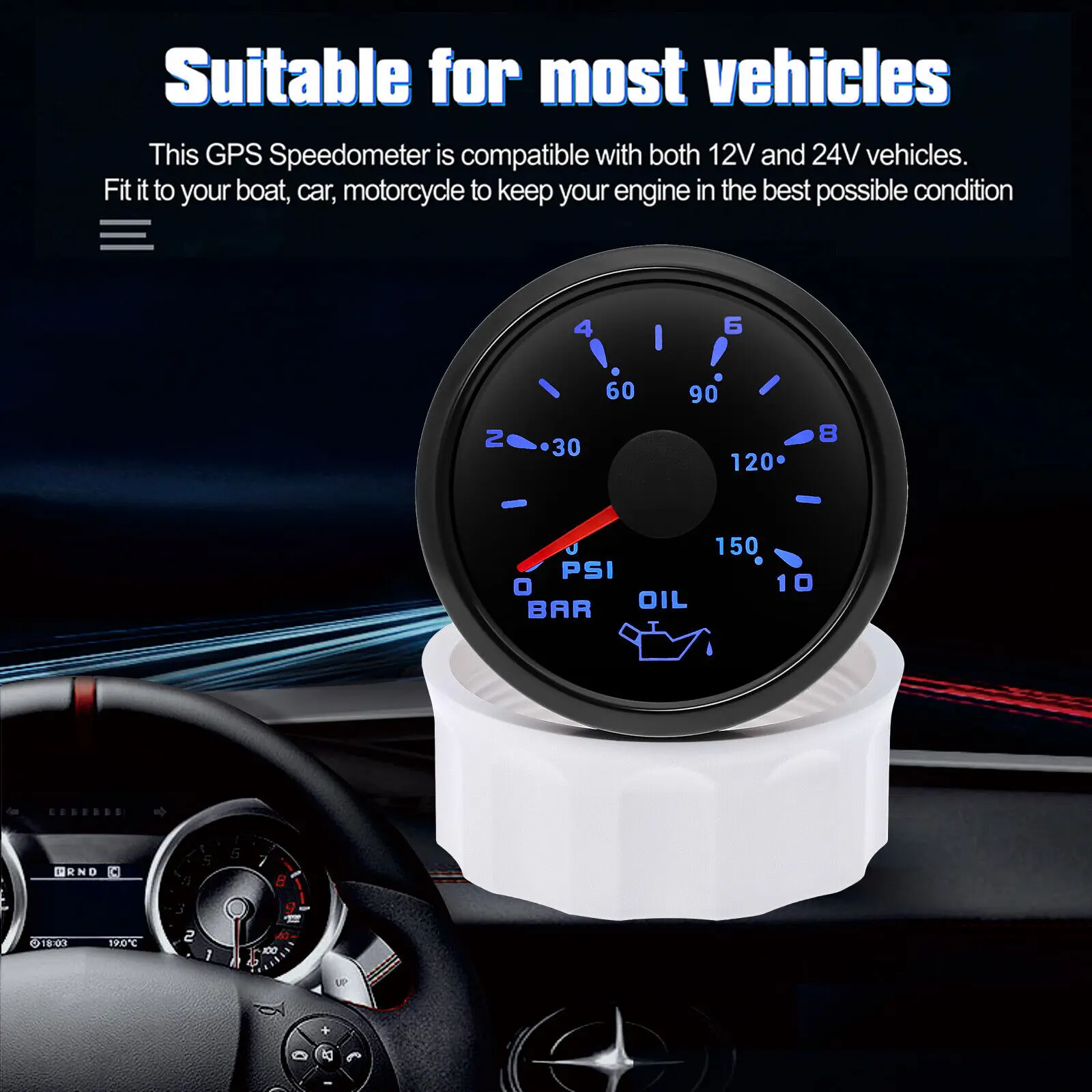 52mm Oil Pressure Gauge LED Meter 0-150Psi 0-10Bar & Sensor for Car Boat