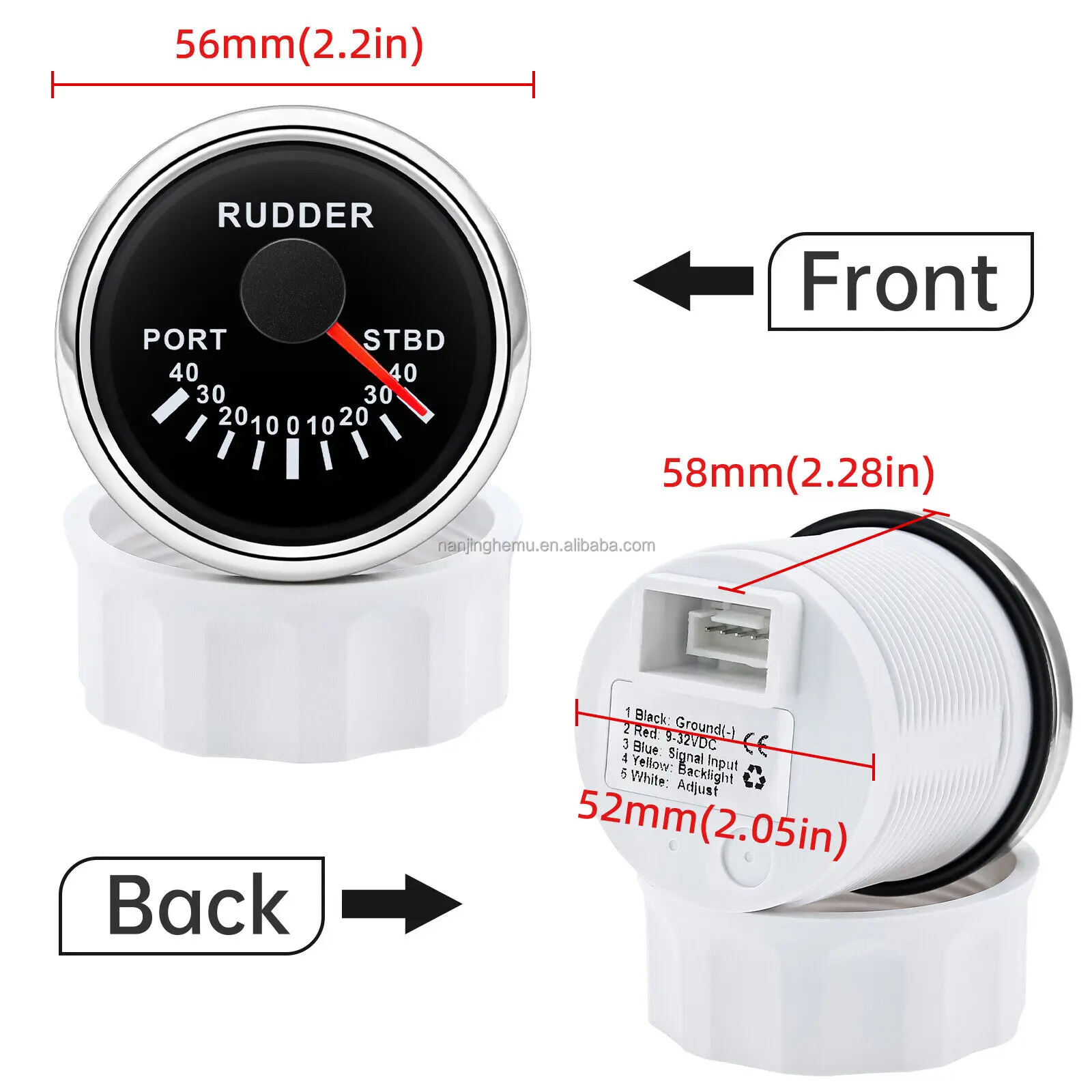 52mm Rudder Angle Indicator Gauge Meter 0-190ohm Red Backlight 0-5V for Marine Boat Vessels