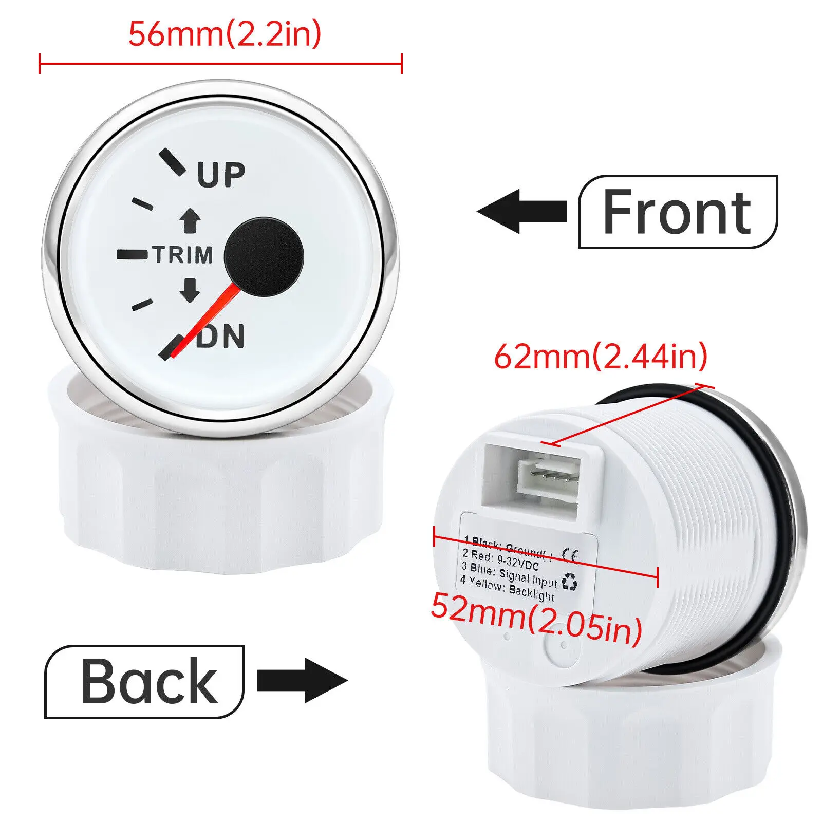 52mm Trim Gauge 0-190ohms Boat Trim Balance Gauge Meter Waterproof Red Backlight