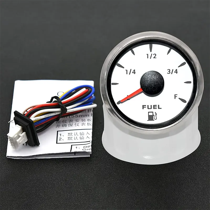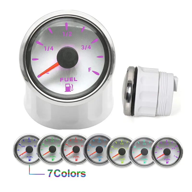 52mm White Faceplate Red Pointer Vehicle Fuel Level Gauge 7 Color