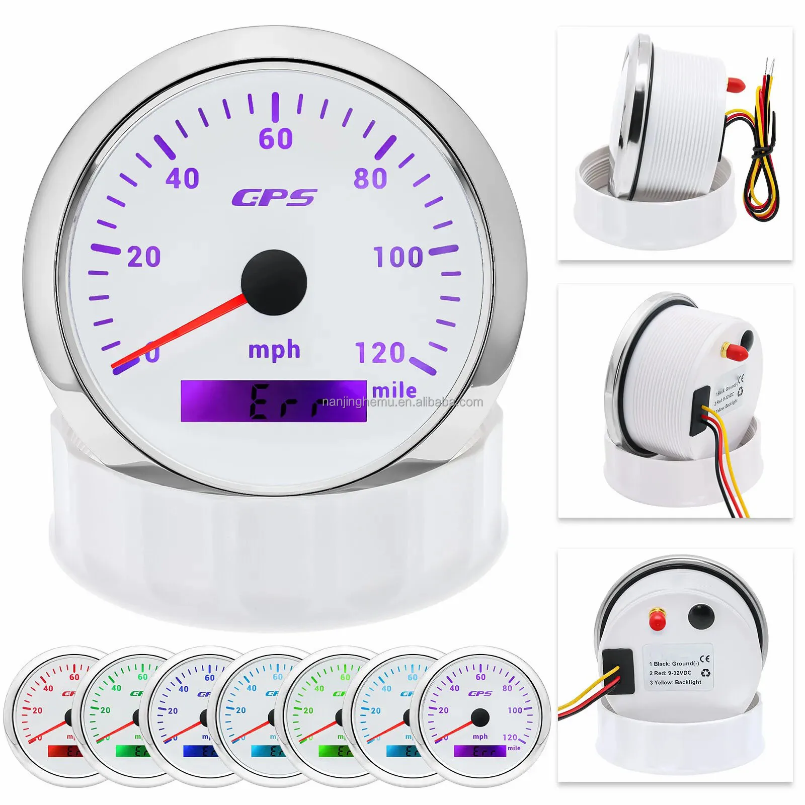 Warmly tips: If any problem after buying. such as some when you install or the parcel received or un-received. please do not open a case and do not hesitate to contact us. We would do our best to give you the best solution. Thank you so muchFeature:High-brightness LED backlight.316 stainless steel for long-term use even in acid-base. humid environment.IP67 waterproof and dust-proof grade.With curved glass( with anti-fog function).Suitable for all kinds of vehicle modification.Using stepper motor drive pointer. accurate display of the engine speed. and with the LCD display clear display mileage.Gauges have many kinds backlight color (red.yellow.orange.green.blue.purple.white).customers can adjust any color that you like Product Detail Speedometer GaugeInstall Diameter: Φ85mm or 3-3/8"Signal: GPSWorking Voltage: 9~32V DCSize: 12x8x12cm / 4.72×3.1×4.75 inchIndication Range: 0-120Km/HBacklight:7 Colors BackligtTachometer Engine hours: 0.0-99999.9HBacklight :7 Color backlightIndicating Range: 0~8000 RPMSignal : PulseFor Tachometer. you can substitute for different unit. please contact us before / after purchase or note on the order.Tachometer: 0-3000rpm/0-4000RPM/6000RPM/7000RPMVolt GaugeSizes: 52 mm (2-1/16")Measuring Range: 8 – 16 (V)Backlight: 7 Colors Fuel Level GaugeSizes: 52 mm (2-1/16")Measuring Range: Empty – FullResistance: 240- 33ohms / 0-190ohmBacklight: 7 Colors Water Temperature GaugeInstall diameter: Φ52mmIndication range: 0~120/30-250Input signal: 287.4~22.4 ohmStorage temperature: -40~+85Backlight: 7 Colors Oil Pressure GaugeInstall diameter:Φ52mm or 2-1/16"Indication range:0~10bar / 0-150 PSIOperating temperature:-30~+75??Storage temperature:-40~+85?? Backlight: 7 Colors Package Includes:1X 85MM GPS Speedometer Gauge1X GPS Antenna1x 85MM Tachometer1X 52MM Voltmeter1x 52MM Fuel level gauge1X 52MM Water temp gauge1X 52MM Oil pressure gauge Installation Instruction