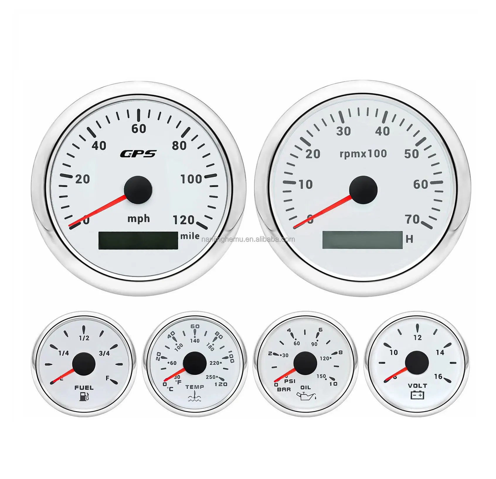 6 Gauge Set 85mm GPS Speedometer 0-120MPH Tachometer 7000rpm & 52mm Fuel Water Oil Gauge for Car Boat