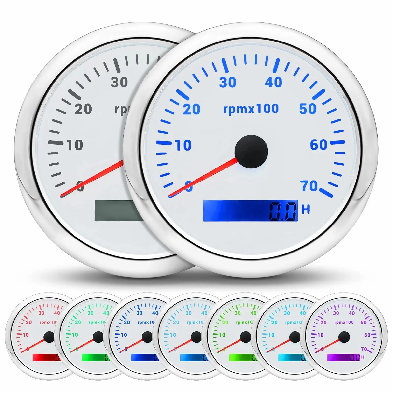 Warmly tips: If any problem after buying. such as some when you install or the parcel received or un-received. please do not open a case and do not hesitate to contact us. We would do our best to give you the best solution. Thank you so muchFeature:High-brightness LED backlight.316 stainless steel for long-term use even in acid-base. humid environment.IP67 waterproof and dust-proof grade.With curved glass( with anti-fog function).Suitable for all kinds of vehicle modification.Using stepper motor drive pointer. accurate display of the engine speed. and with the LCD display clear display mileage.Gauges have many kinds backlight color (red.yellow.orange.green.blue.purple.white).customers can adjust any color that you like Product Detail Speedometer GaugeInstall Diameter: Φ85mm or 3-3/8"Signal: GPSWorking Voltage: 9~32V DCSize: 12x8x12cm / 4.72×3.1×4.75 inchIndication Range: 0-120Km/HBacklight:7 Colors BackligtTachometer Engine hours: 0.0-99999.9HBacklight :7 Color backlightIndicating Range: 0~8000 RPMSignal : PulseFor Tachometer. you can substitute for different unit. please contact us before / after purchase or note on the order.Tachometer: 0-3000rpm/0-4000RPM/6000RPM/7000RPMVolt GaugeSizes: 52 mm (2-1/16")Measuring Range: 8 – 16 (V)Backlight: 7 Colors Fuel Level GaugeSizes: 52 mm (2-1/16")Measuring Range: Empty – FullResistance: 240- 33ohms / 0-190ohmBacklight: 7 Colors Water Temperature GaugeInstall diameter: Φ52mmIndication range: 0~120/30-250Input signal: 287.4~22.4 ohmStorage temperature: -40~+85Backlight: 7 Colors Oil Pressure GaugeInstall diameter:Φ52mm or 2-1/16"Indication range:0~10bar / 0-150 PSIOperating temperature:-30~+75??Storage temperature:-40~+85?? Backlight: 7 Colors Package Includes:1X 85MM GPS Speedometer Gauge1X GPS Antenna1x 85MM Tachometer1X 52MM Voltmeter1x 52MM Fuel level gauge1X 52MM Water temp gauge1X 52MM Oil pressure gauge Installation Instruction