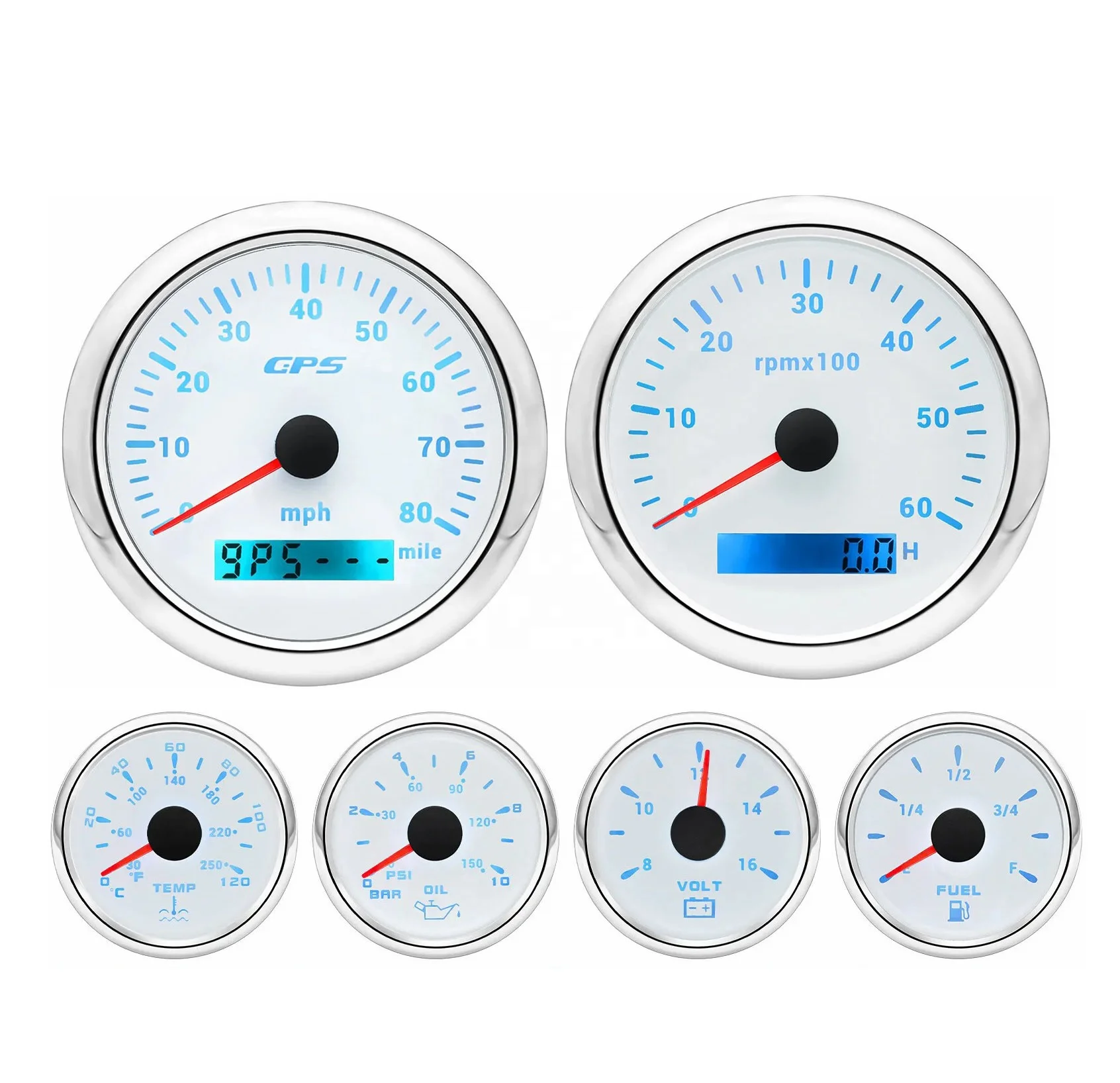 6 Gauge Set 85mm GPS Speedometer 0-80MPH Tacho 6000rpm Fuel Water Temp Volt Oil Pressure