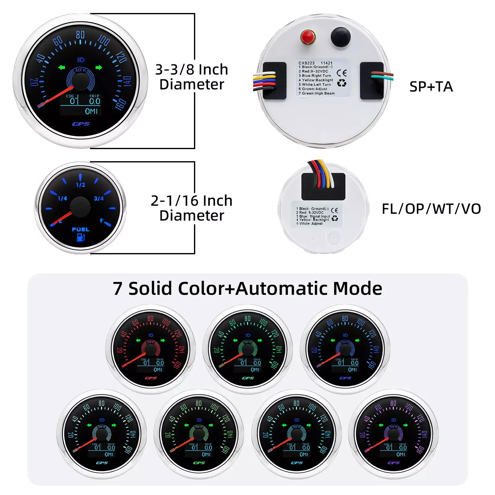 6 Gauge Set 85mm GPS Speedometer 160MPH Tacho&52mm Fuel/Oil/Temp/Volt Gauge