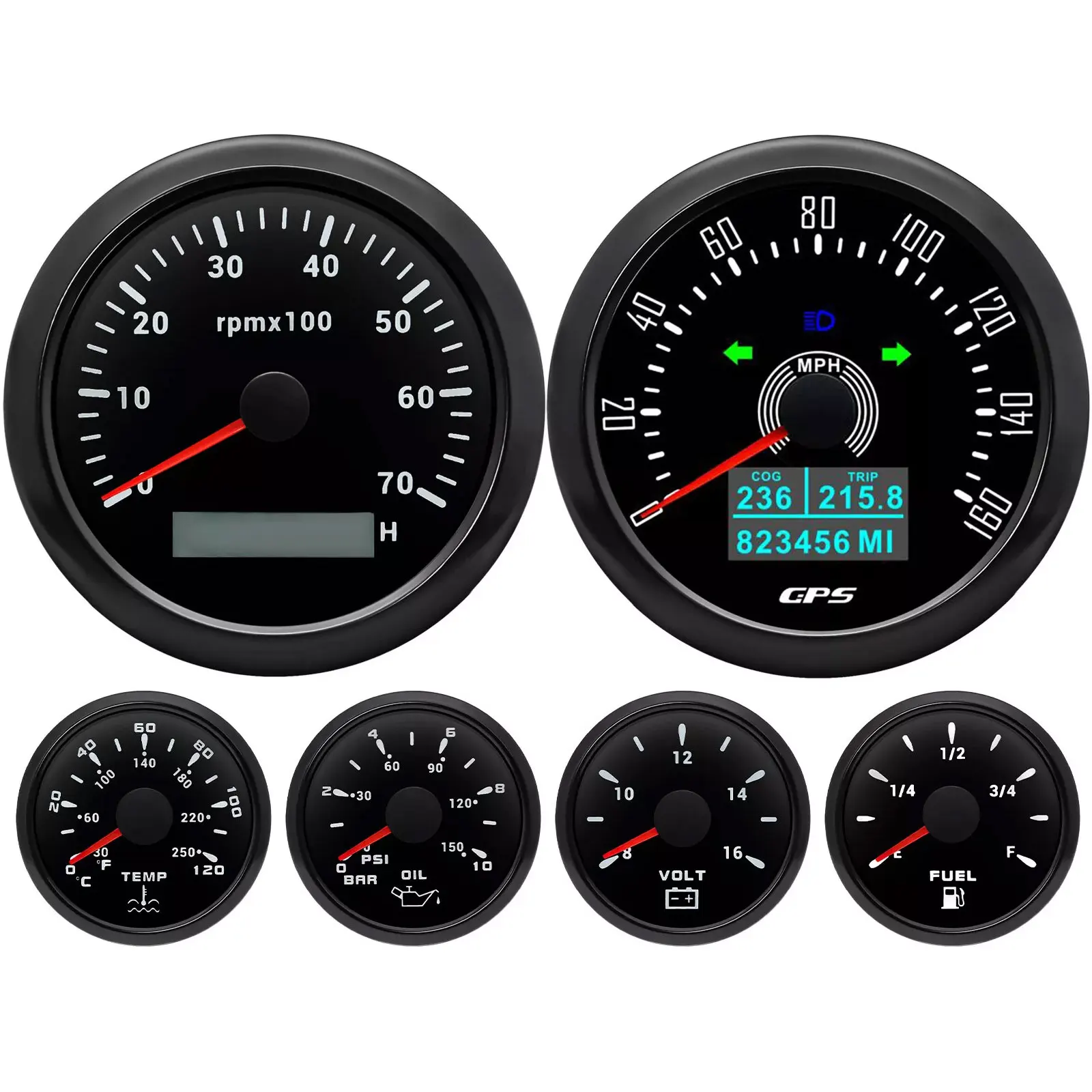 6 Gauge Set 85mm GPS Speedometer 160MPH Tachometer 7000RPM Waterproof Fuel Level Oil Pressure Water Temp Volt Gauge for Boat